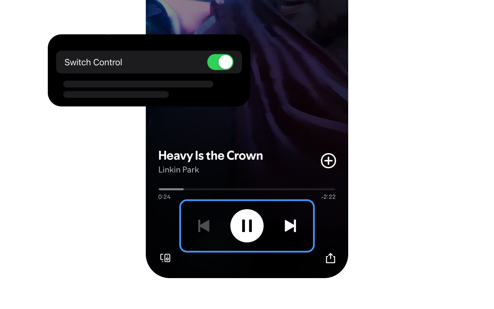 Switch Control helps people with severe physical disabilities or motor impairments navigate interfaces using adaptive switches, mouth sticks, external