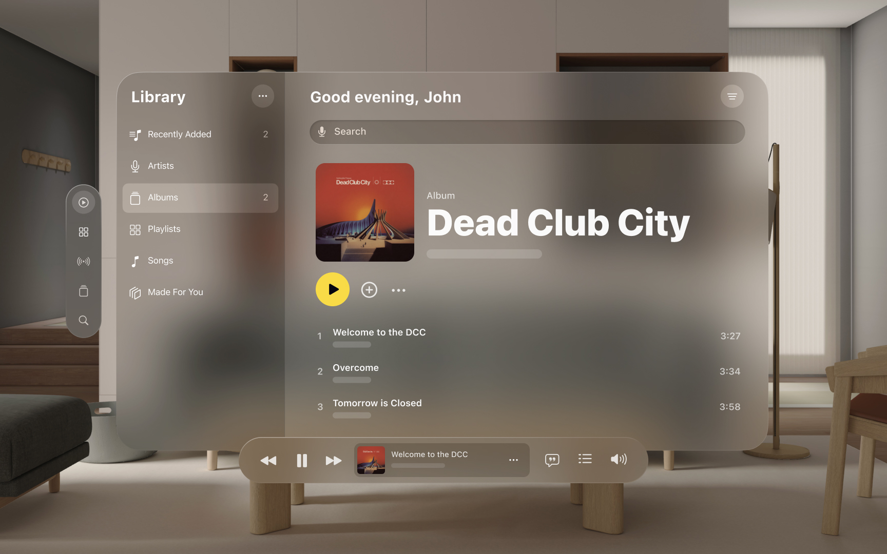VisionOS uses materials differently from iOS. The main material, called glass, lets users see their surroundings and virtual