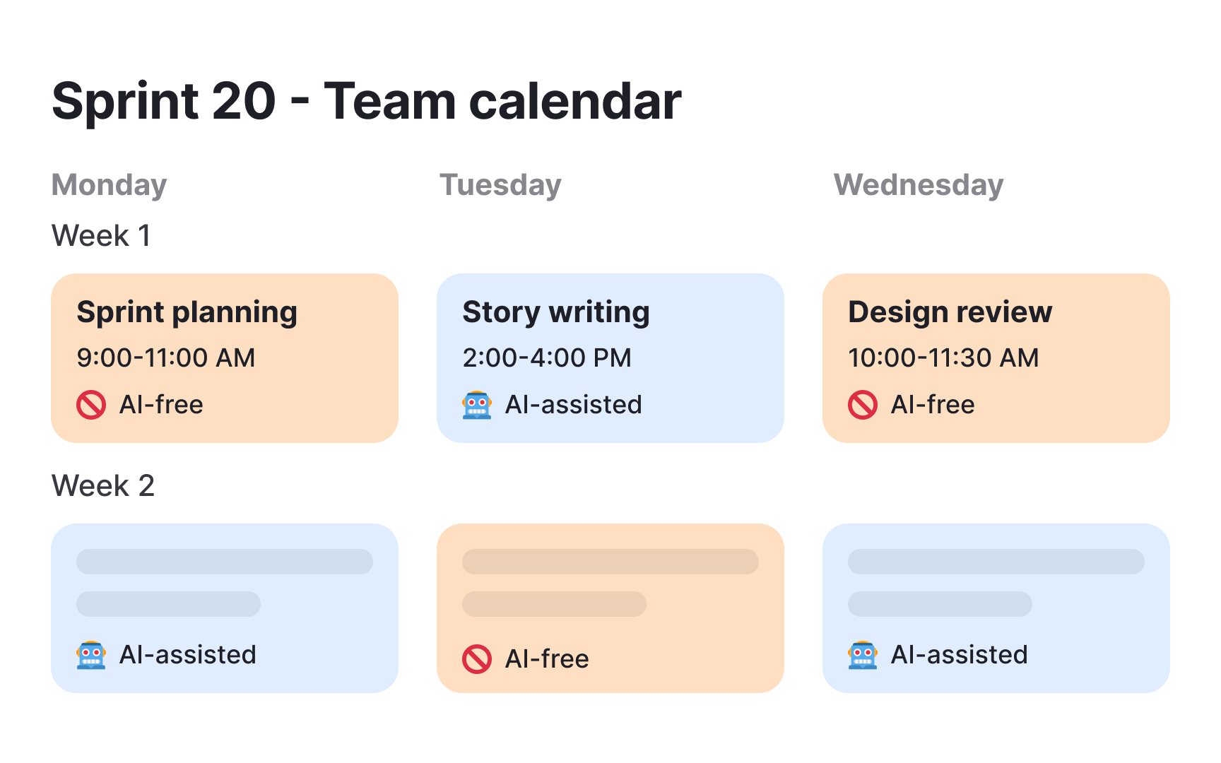 Schedule regular "AI-free" sessions. Run some sprint plannings, design reviews, and strategy sessions without any AI assistance. This keeps core product skills sharp and ensures your team can function if AI tools become unavailable. It also helps identify where AI truly adds value versus where it's become a crutch.