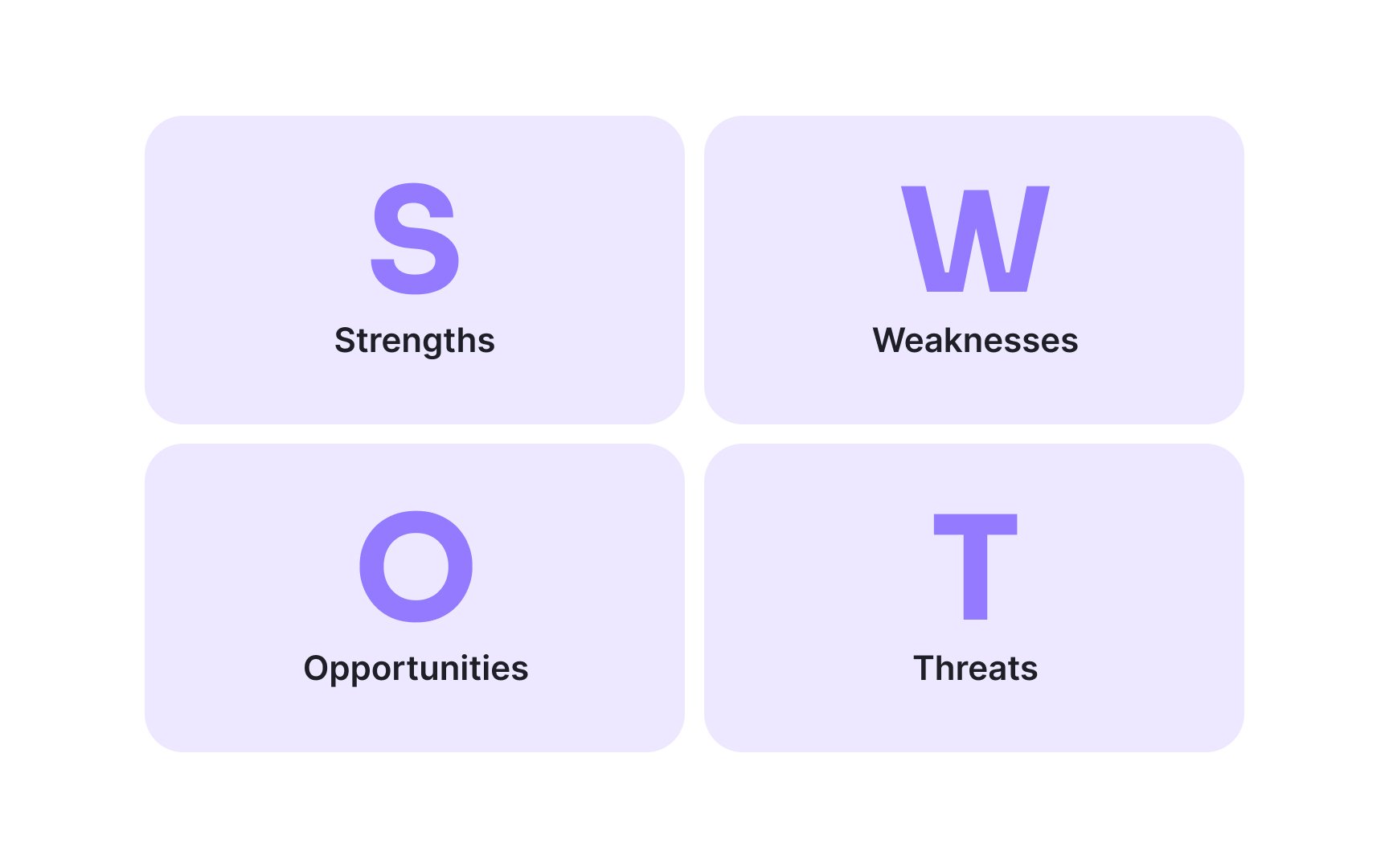 - Opportunities encompass market trends, competitor mistakes, or regulatory changes