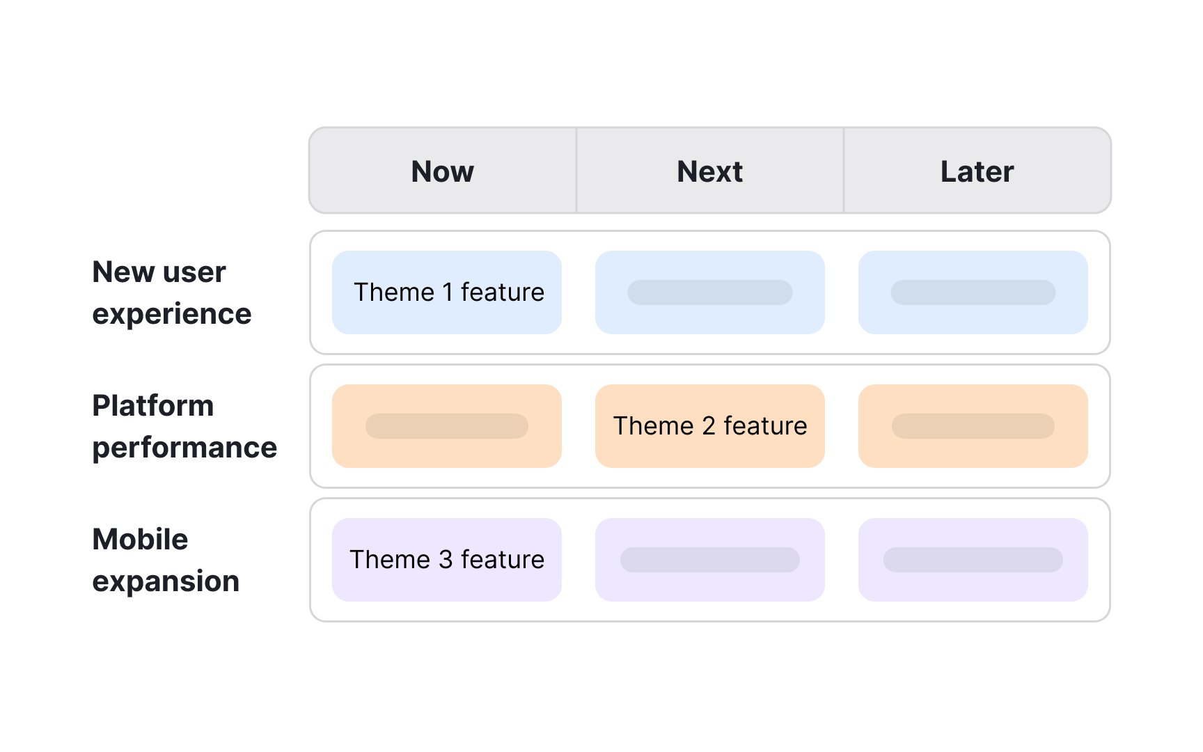Themes communicate the "why" behind work more effectively than feature lists. "Improve checkout conversion" tells a clearer story than "Add express checkout, optimize form fields, reduce steps." This narrative helps teams make better decisions when implementation details change.