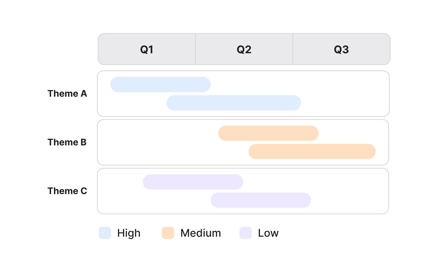 One way to show certainty is by grouping initiatives into categories such as high, medium, and low confidence. For example, items currently in development can be marked as high confidence, while those planned for the next quarter may be medium, and longer-term ideas may be low. Visual markers such as