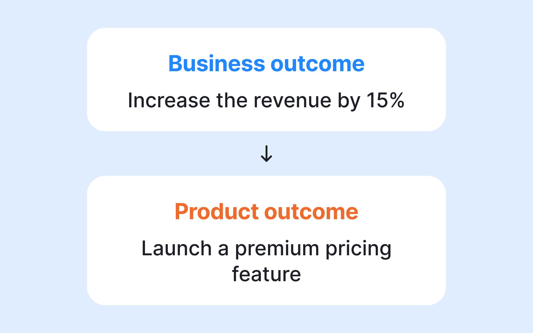To bridge this gap, teams translate business outcomes into product outcomes. A product outcome focuses on customer behavior inside the product that signals progress toward the broader business goal. For instance, if the business outcome is reducing churn, a related product outcome might be increasing the percentage of users who complete onboarding or return within the first week.