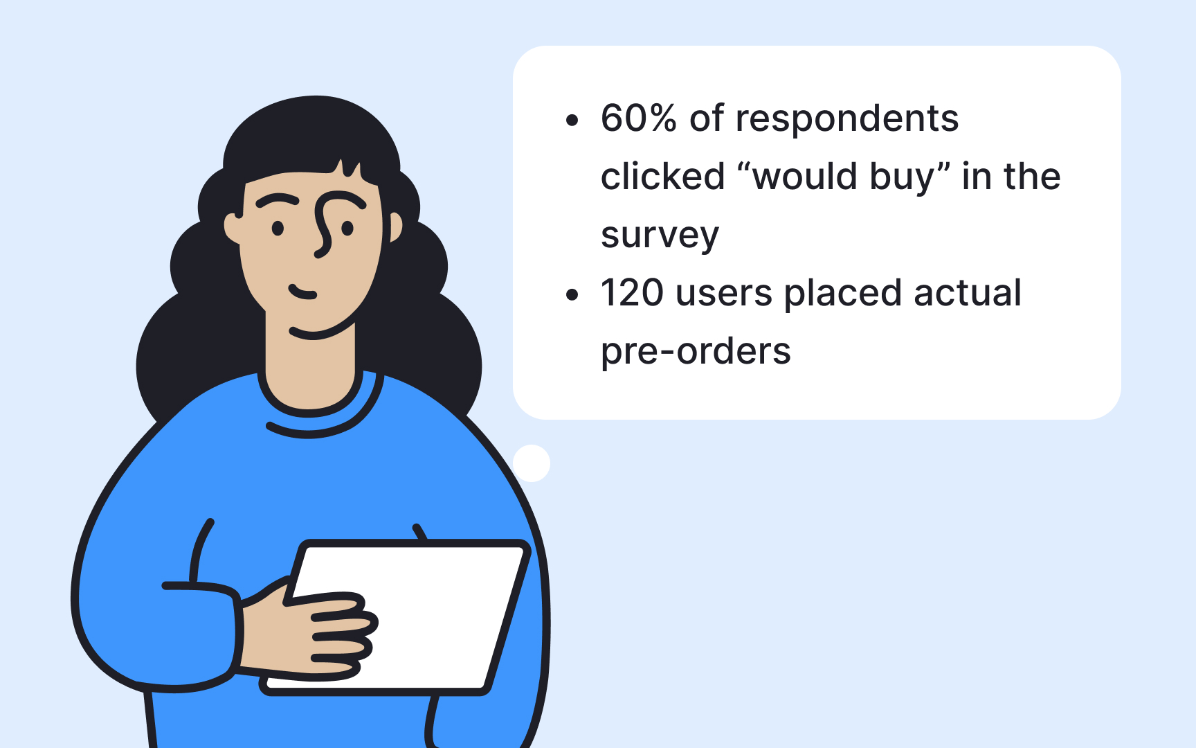 landing pages or pre-orders. - Beware of leading questions that may have inflated enthusiasm.