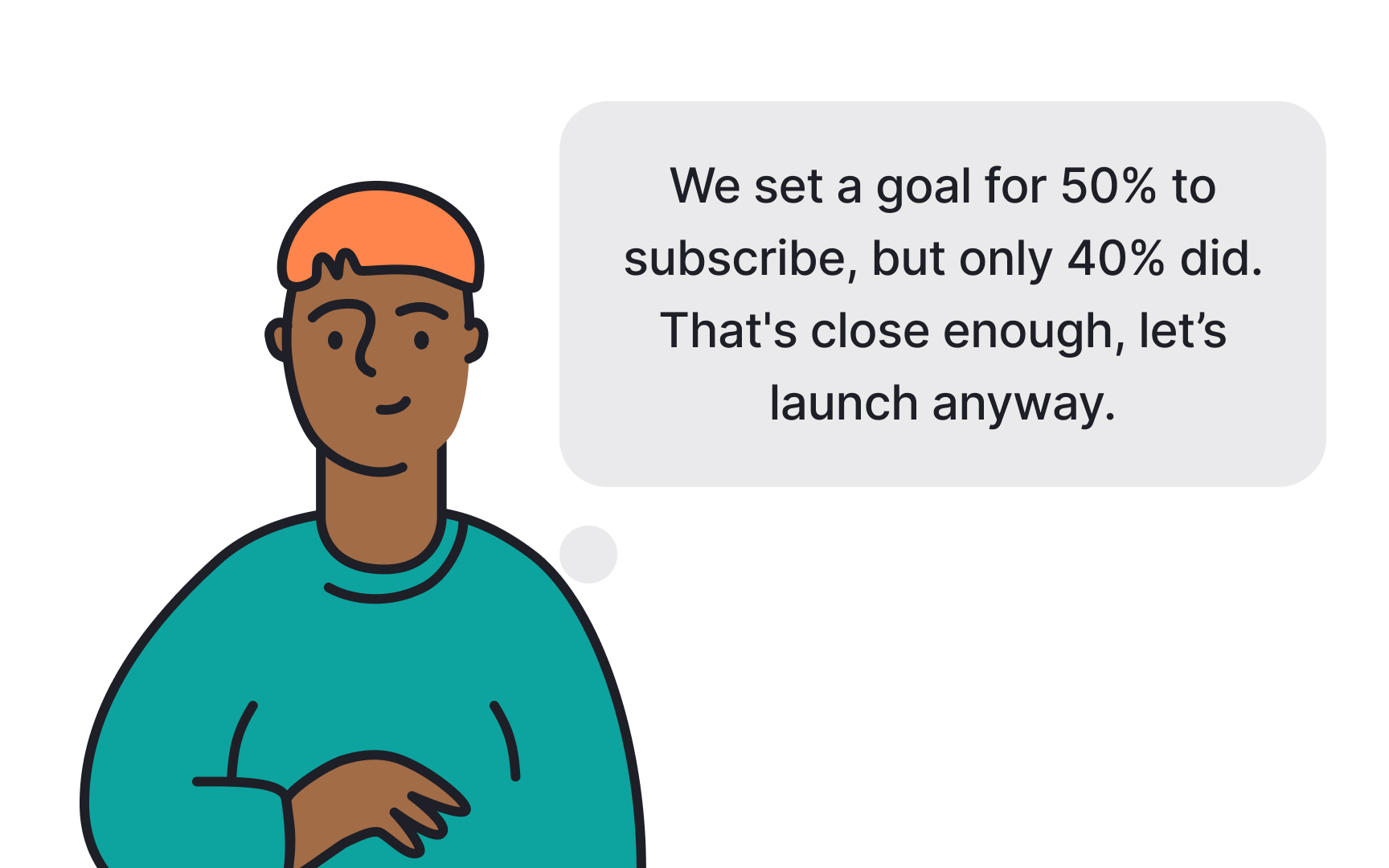 When you run a test, it's important to stick to the success criteria or thresholds you set ahead of time. It can be tempting to bend the rules if the results aren’t exactly what you hoped for. For example, if you decided that success means 70% of users complete a task, but only 60% did, you might feel tempted to say, “That’s close enough.” But doing this can lead to poor decisions.