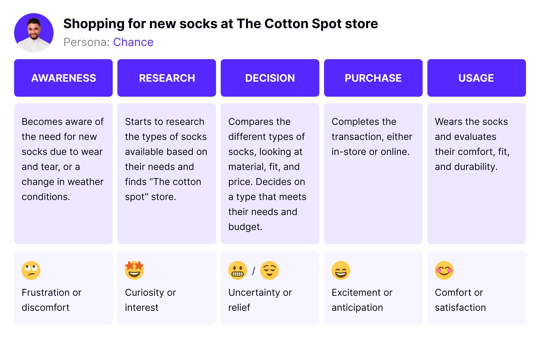 By mapping out the customer's actions at each phase, businesses can understand how customers engage with their service and identify potential pain points or challenges. This information can then be used to improve the