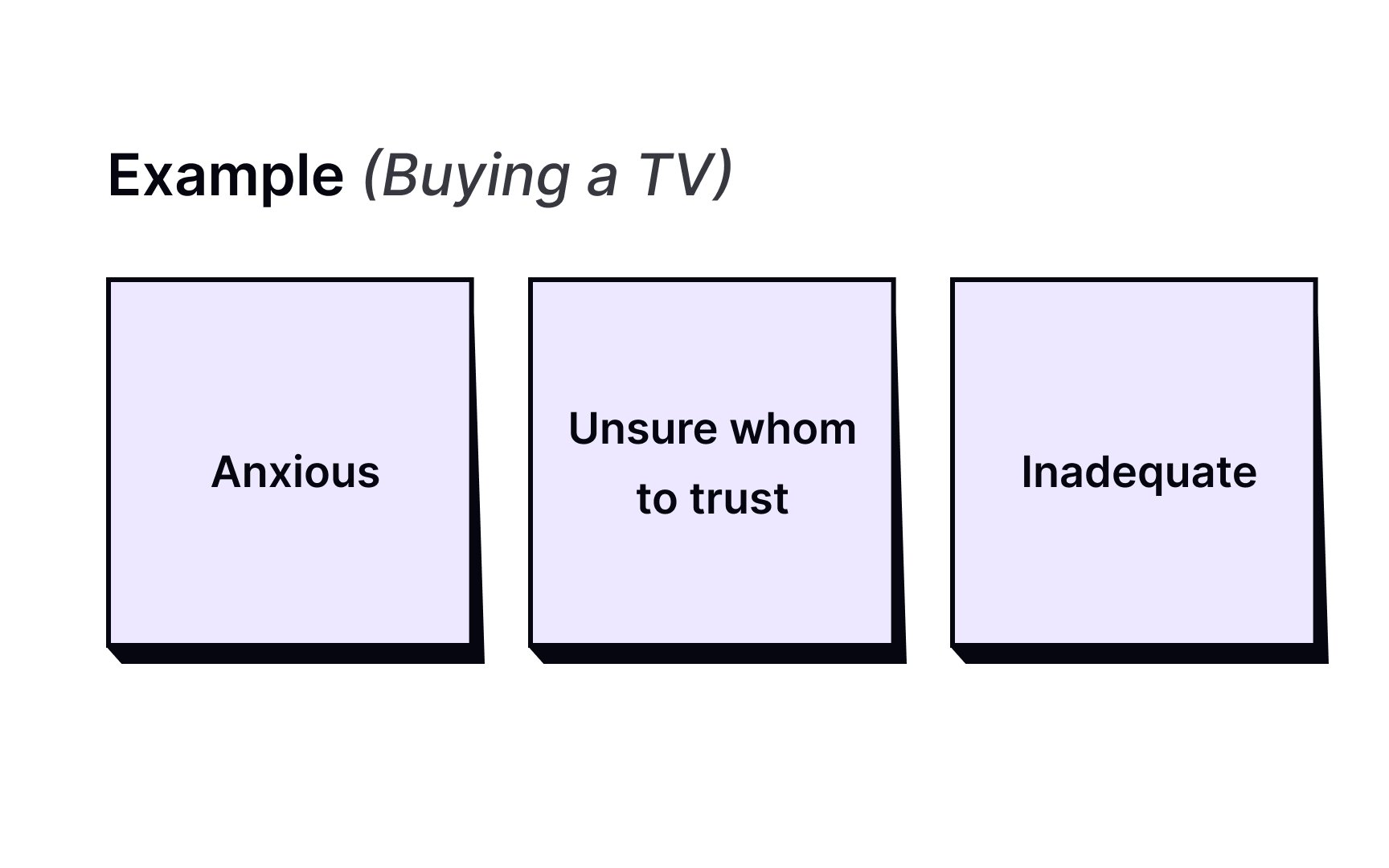 Ask yourself what worries the user. What does the user get excited about? How does the user feel about the experience? For example: