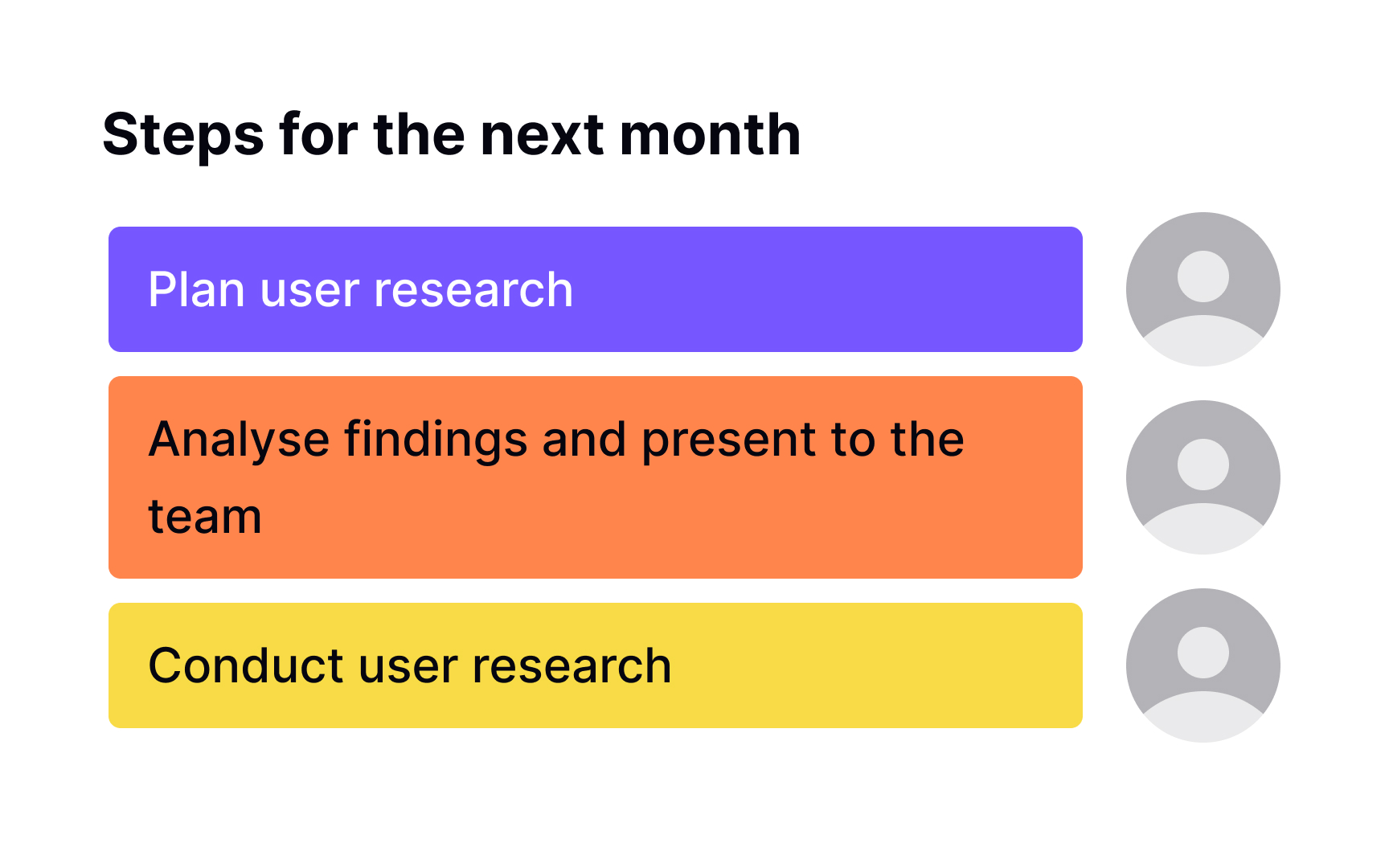 By the end of the workshop discussions, the team often comes together to define the next steps. They generally include certain activities — for example, clarifying user needs by scheduling a few interviews, updating a user