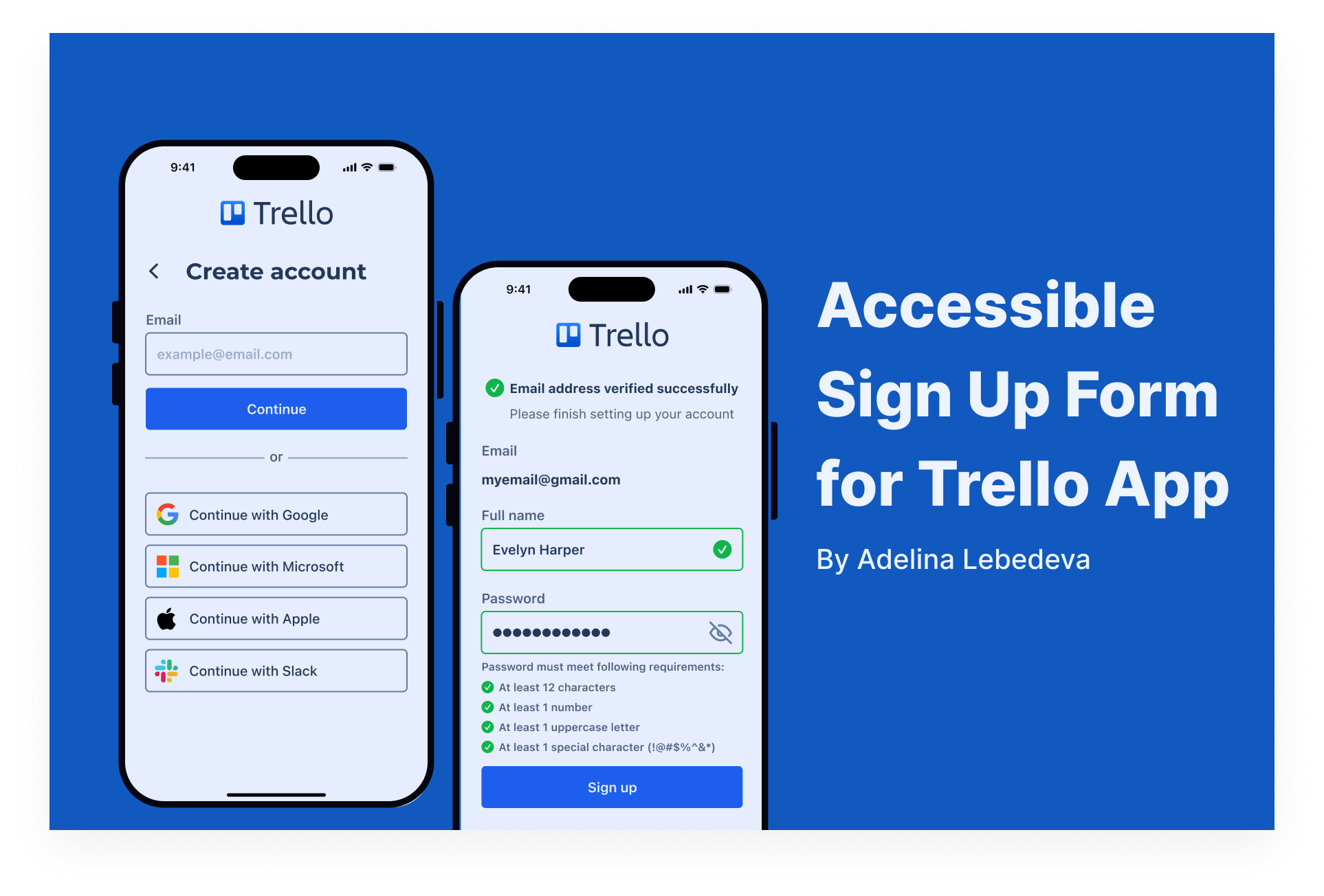 The purpose of my redesign of Trello iOS mobile app signup form was to make it user-friendly. By focusing on accessibility best practices, this redesign aims to provide a seamless and equitable experience for all users.