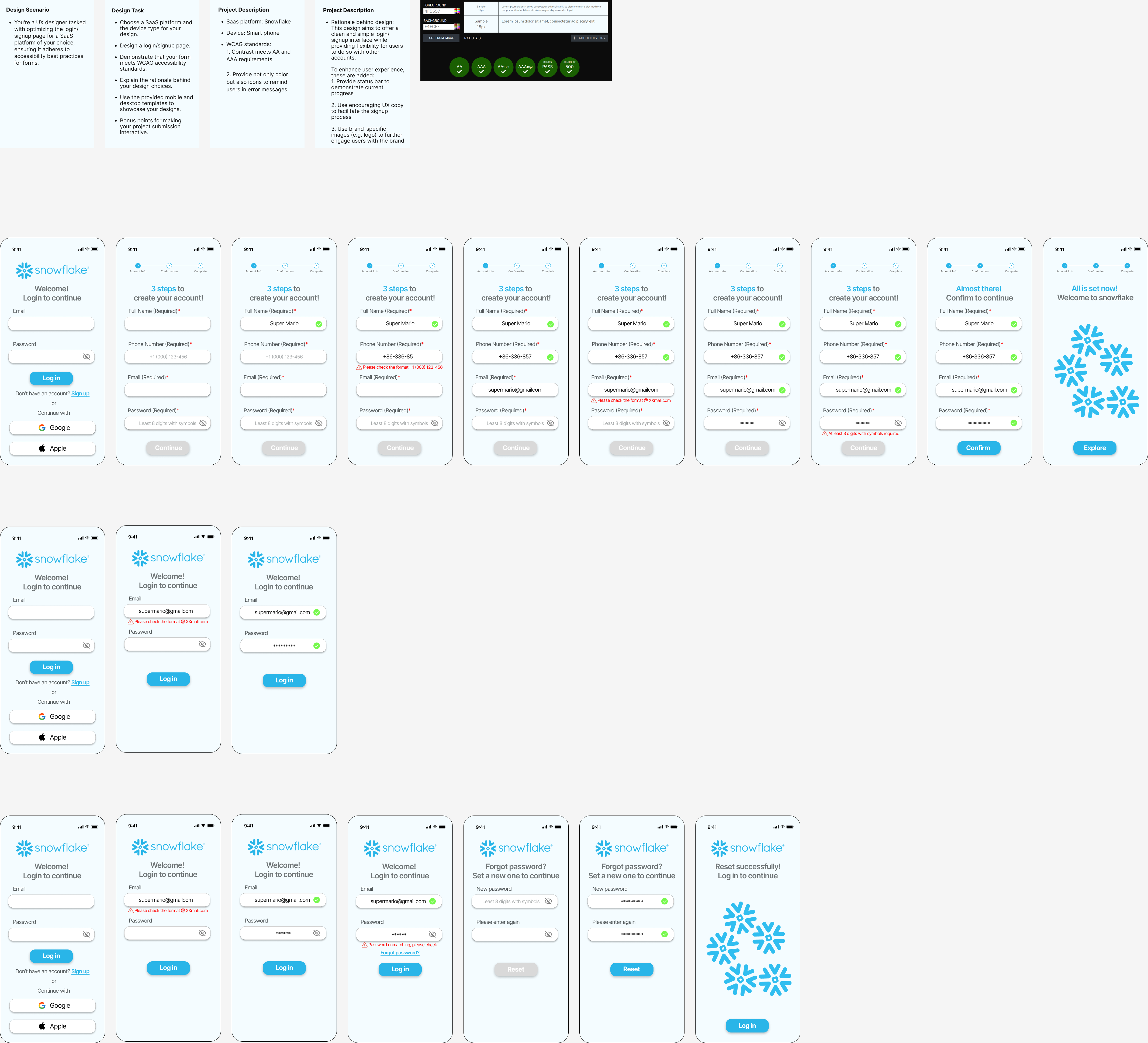 Rationale behind design: This design aims to offer a clean and simple login/signup interface while providing flexibility for users to do so with other accounts.