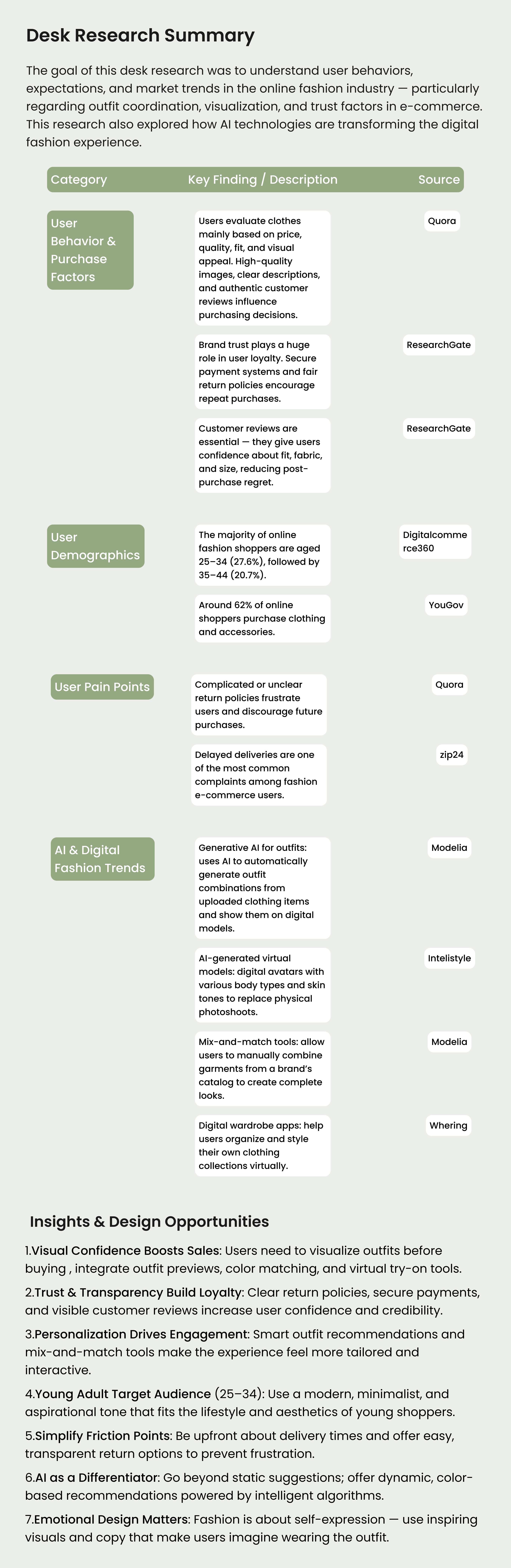 I conducted secondary research to understand user behavior and market trends in fashion e-commerce.