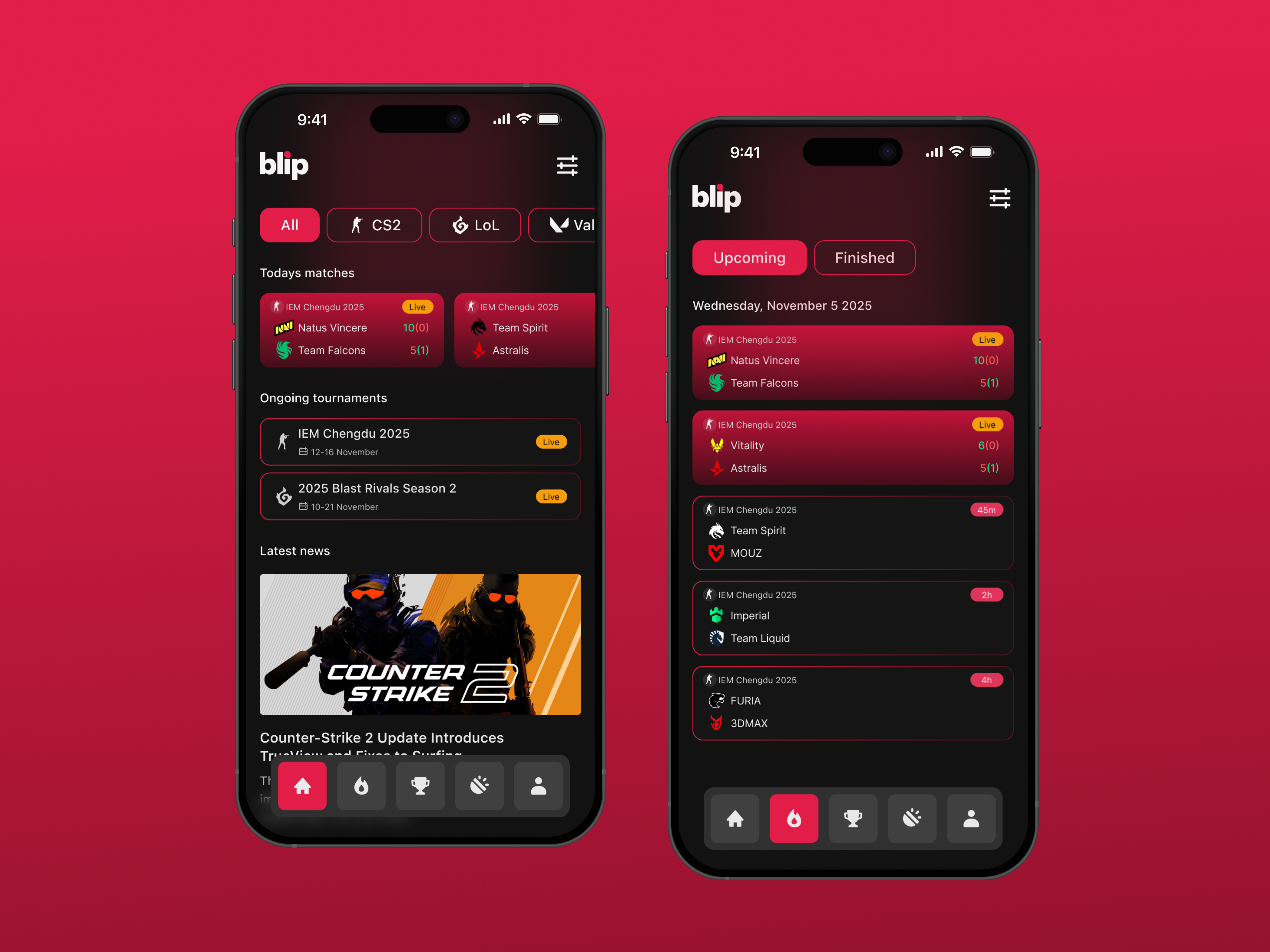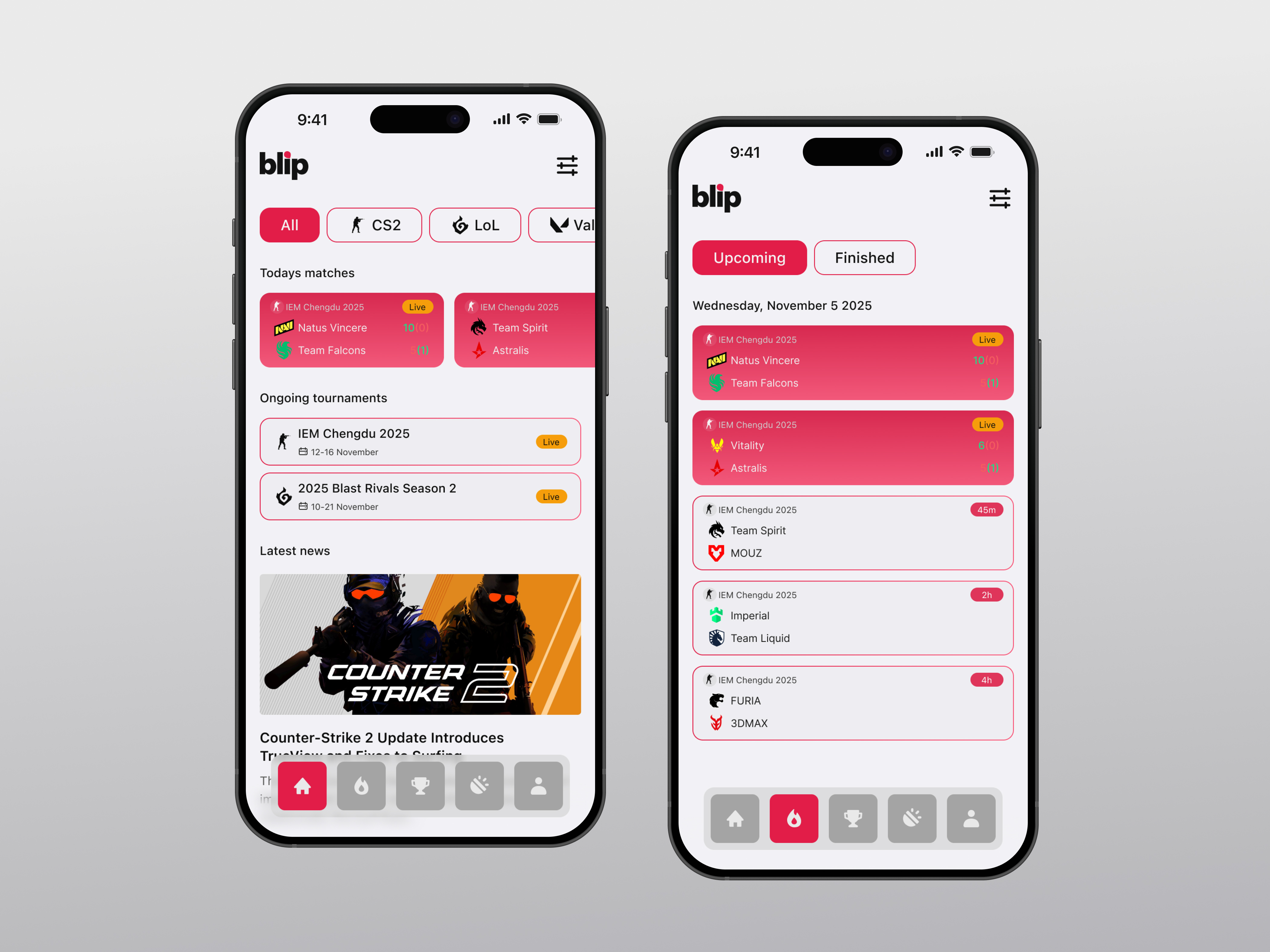 Bonjour, comrades! Today I present the case of Blip - an esports hub app for gamers where you can check esports news, learn about upcoming tournaments, and watch live matches.