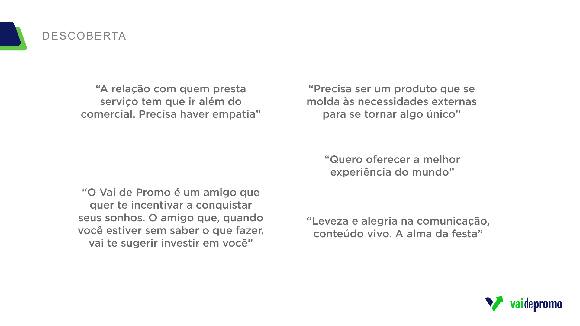 Initially, "Vai de Promo" did not have a strong connection with the desired audience and also did not convey the company's values. There was no design thinking process behind the definition of the brand or product assets. Therefore, the rebranding process would essentially be the creation of a new brand that would give meaning to “Vai de Promo” and communicate its purpose. Today, we are going to talk about the brand.