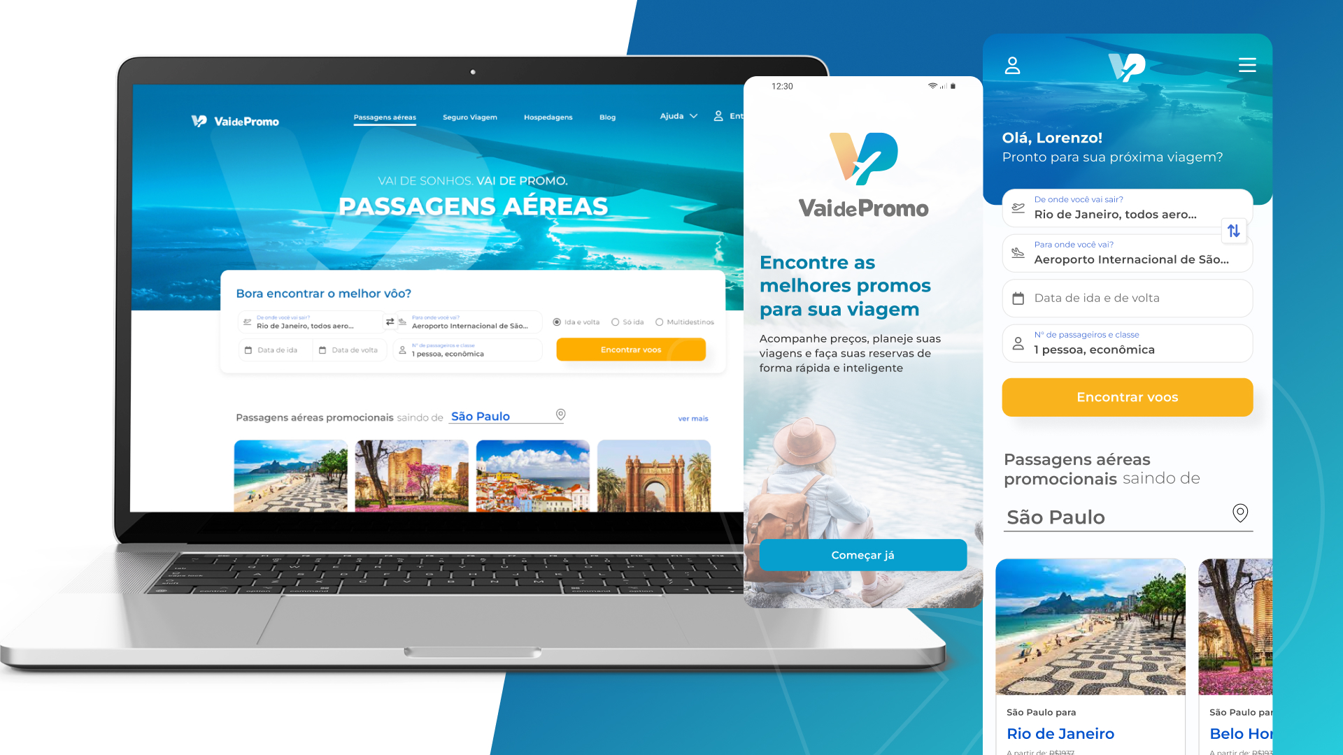 "Vai de Promo" is a brand which is part of the Amo Promo group, a company recognized in the tourism market for its excellent service. In the past, Amo Promo managed three separate brands that sold airline tickets, hotel reservations, and travel insurance respectively. The goal of Vai de Promo was to merge these sales flows in one single website and brand, which would also be the place for future travel products that the company may start offering.