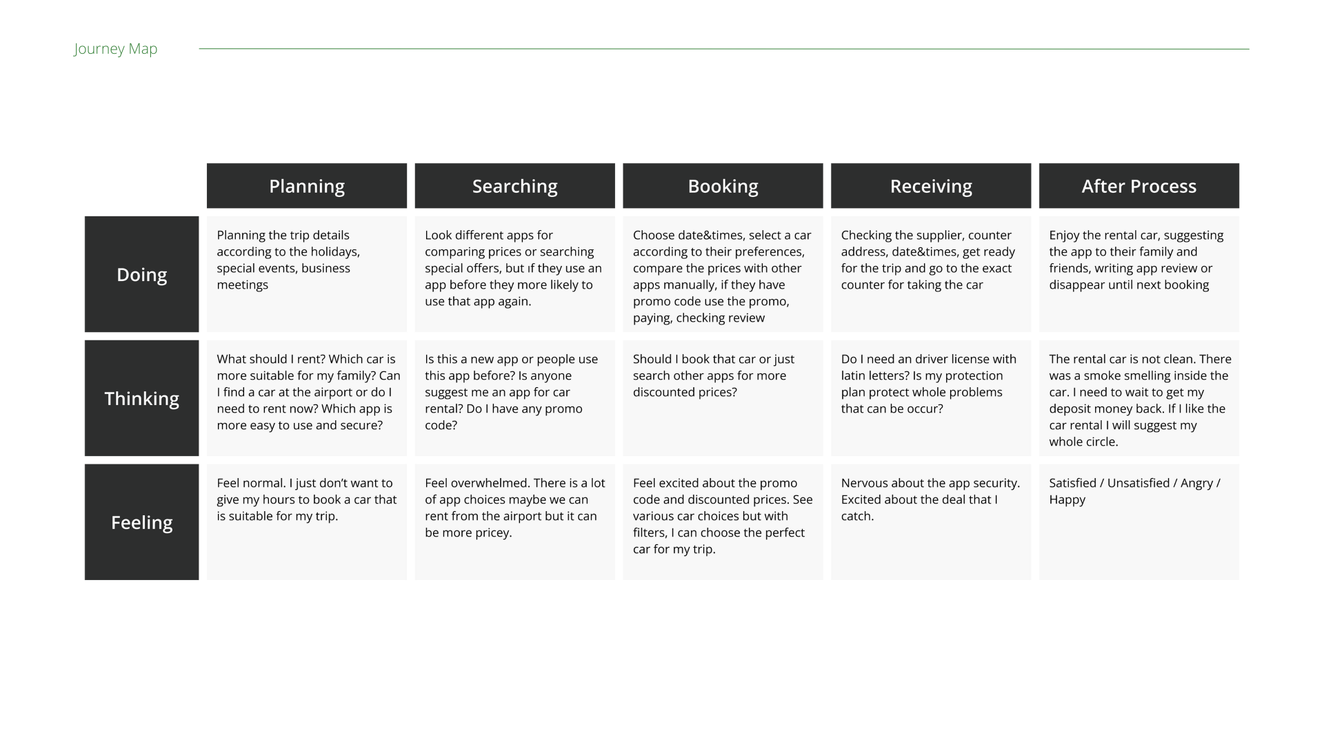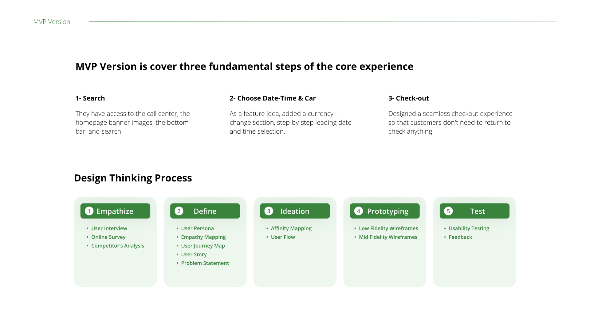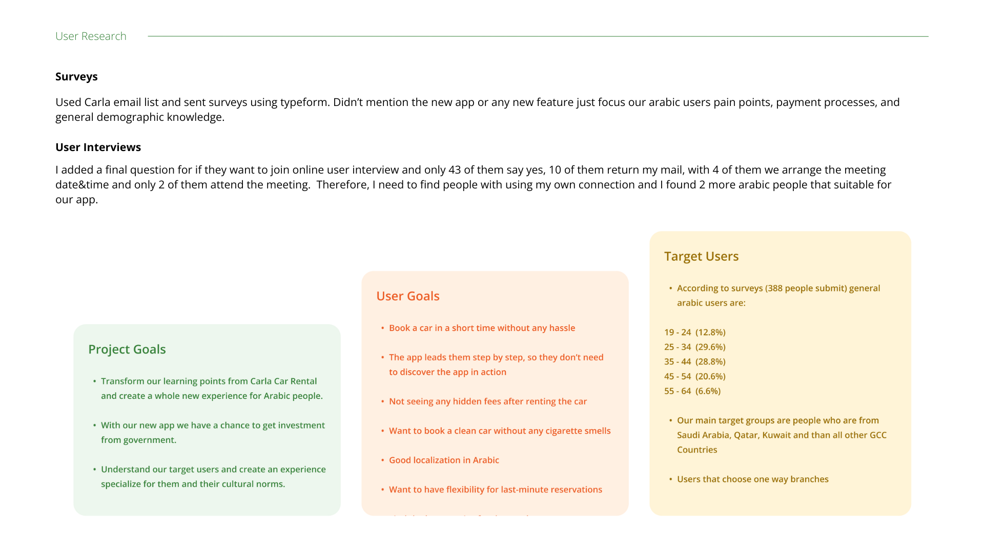 While the case study mentions pain points related to payment processes and general user experiences, providing more specific examples or quotes from user interviews would strengthen the narrative. What specific issues did users face with existing car rental apps?