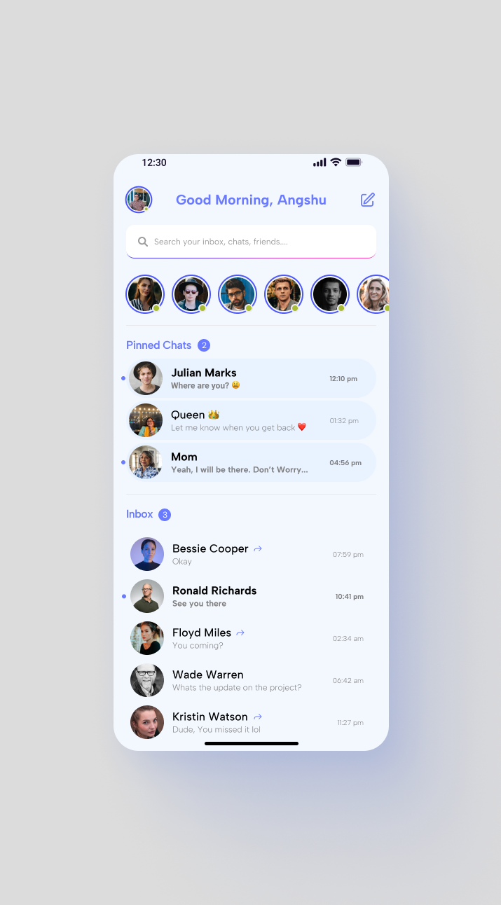 - The small arrow next to the contact name wasn’t immediately clear—it seems to indicate that the last message was sent by the user? Since this isn’t a standard convention in chat apps, consider exploring a more intuitive way to convey this.