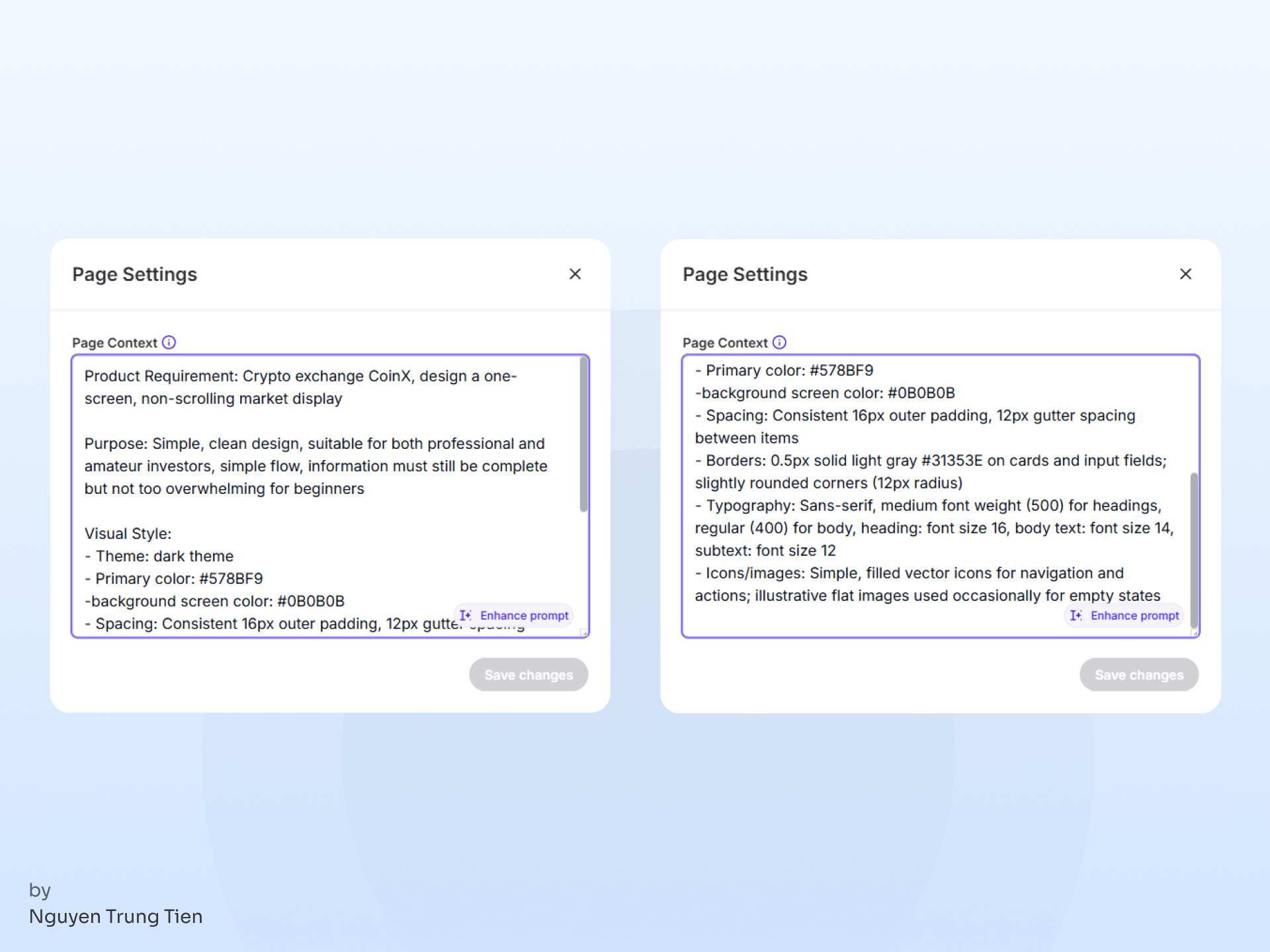 Then, I started exploring UXPilot. I went through the official guides and tried different tools to understand how prompts and iterations worked. It wasn’t too difficult to get familiar with, but during this learning phase, I definitely burned through quite a few credits while experimenting and testing different ideas.
