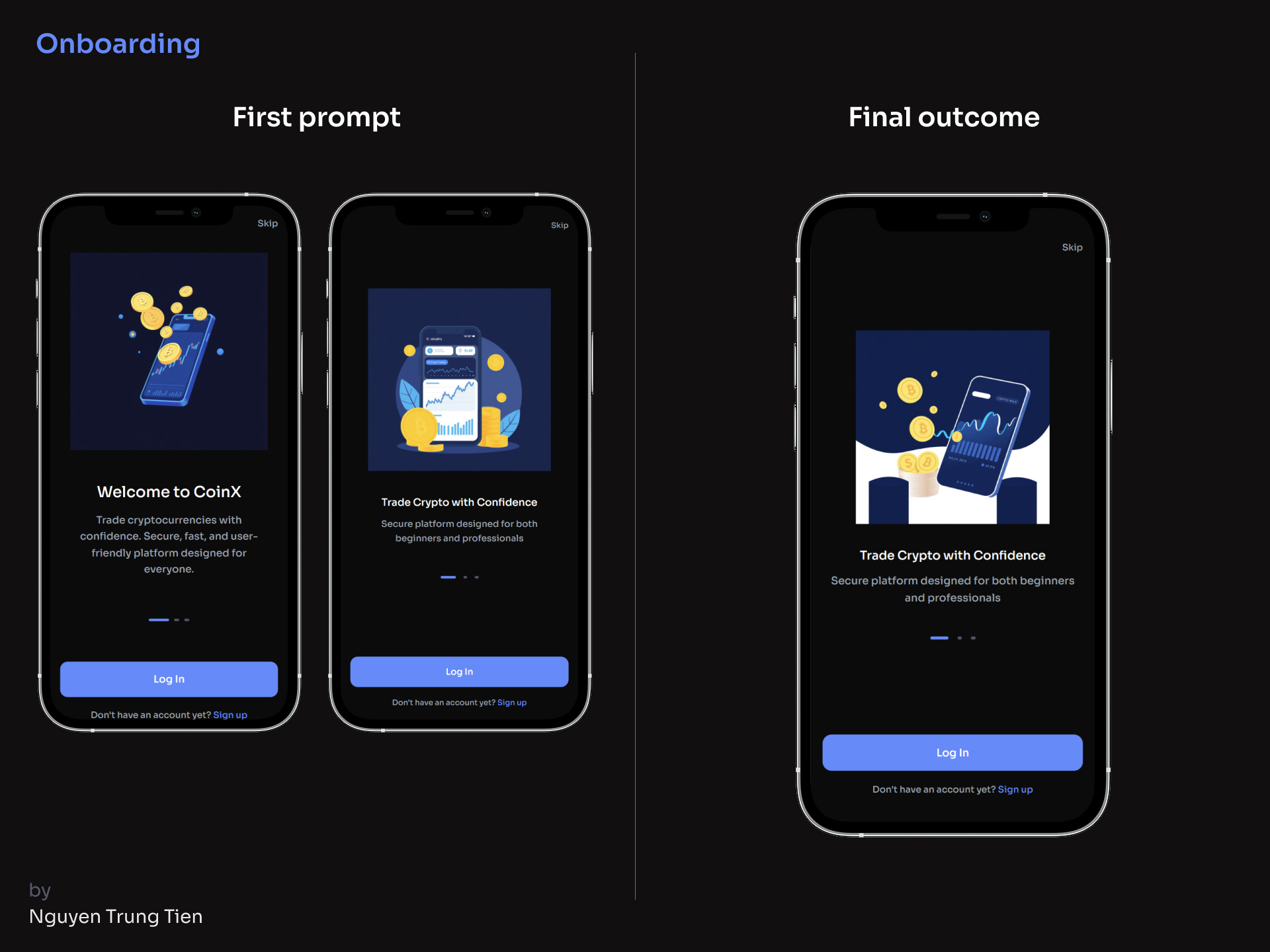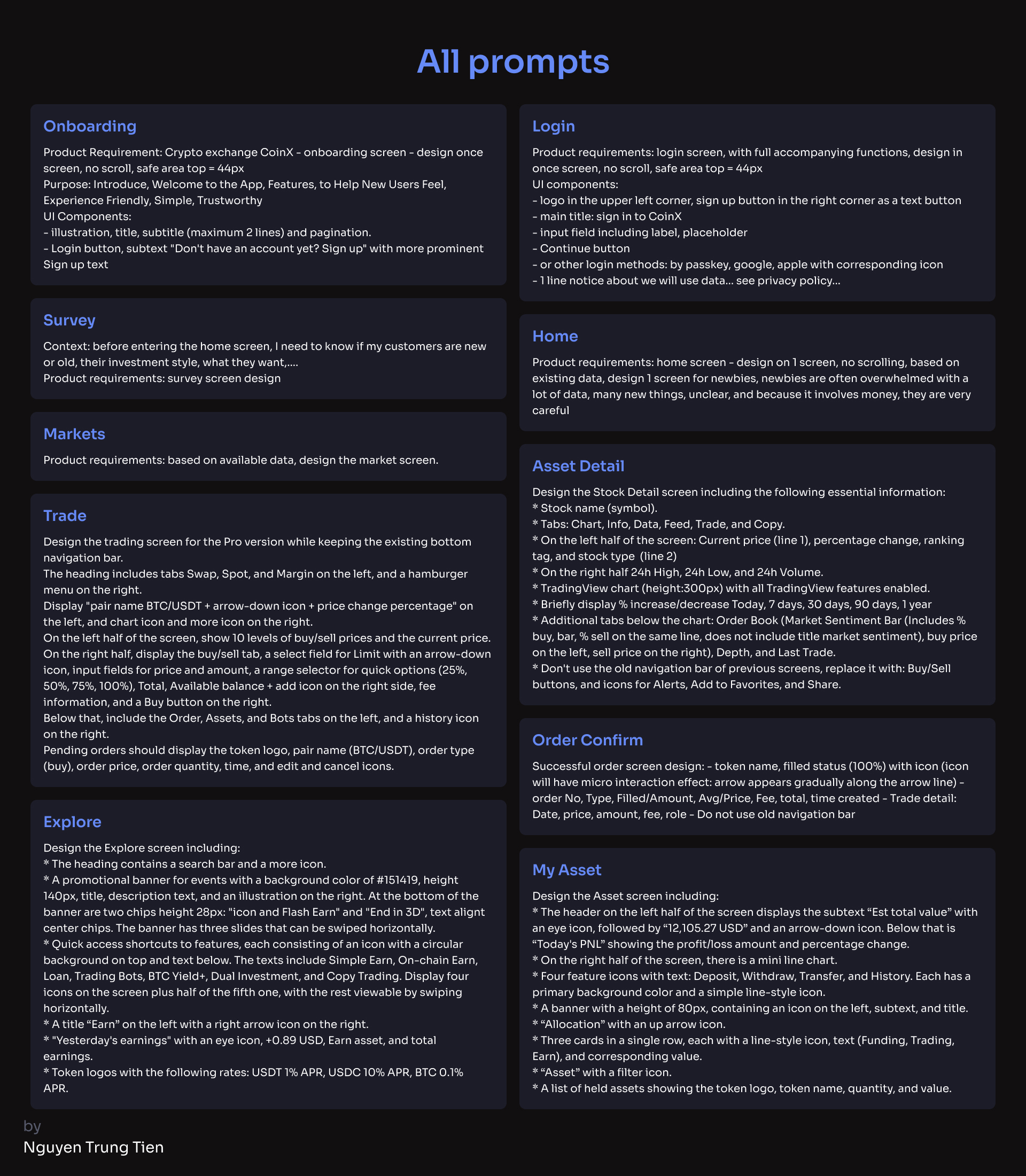 Once I understood the basics, I began by following one of UXPilot’s sample prompts to build my first layout. I set up the page content structure, imported my own images, and started shaping the foundation of the crypto trading app.