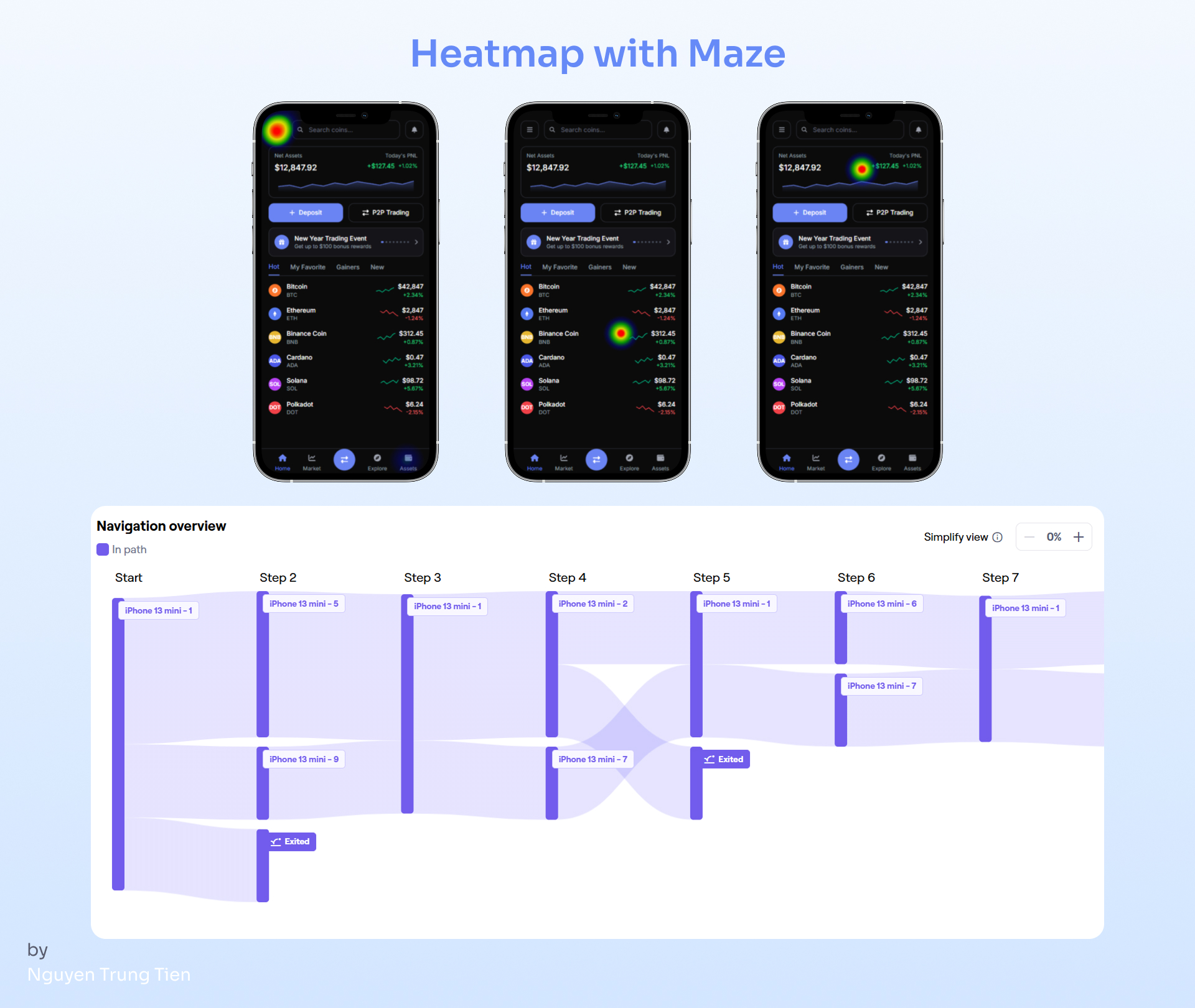 After getting the final results, I tested the design using UXPilot’s Predictive Heatmap feature and Maze’s Prototype Test, then compared the outcomes.