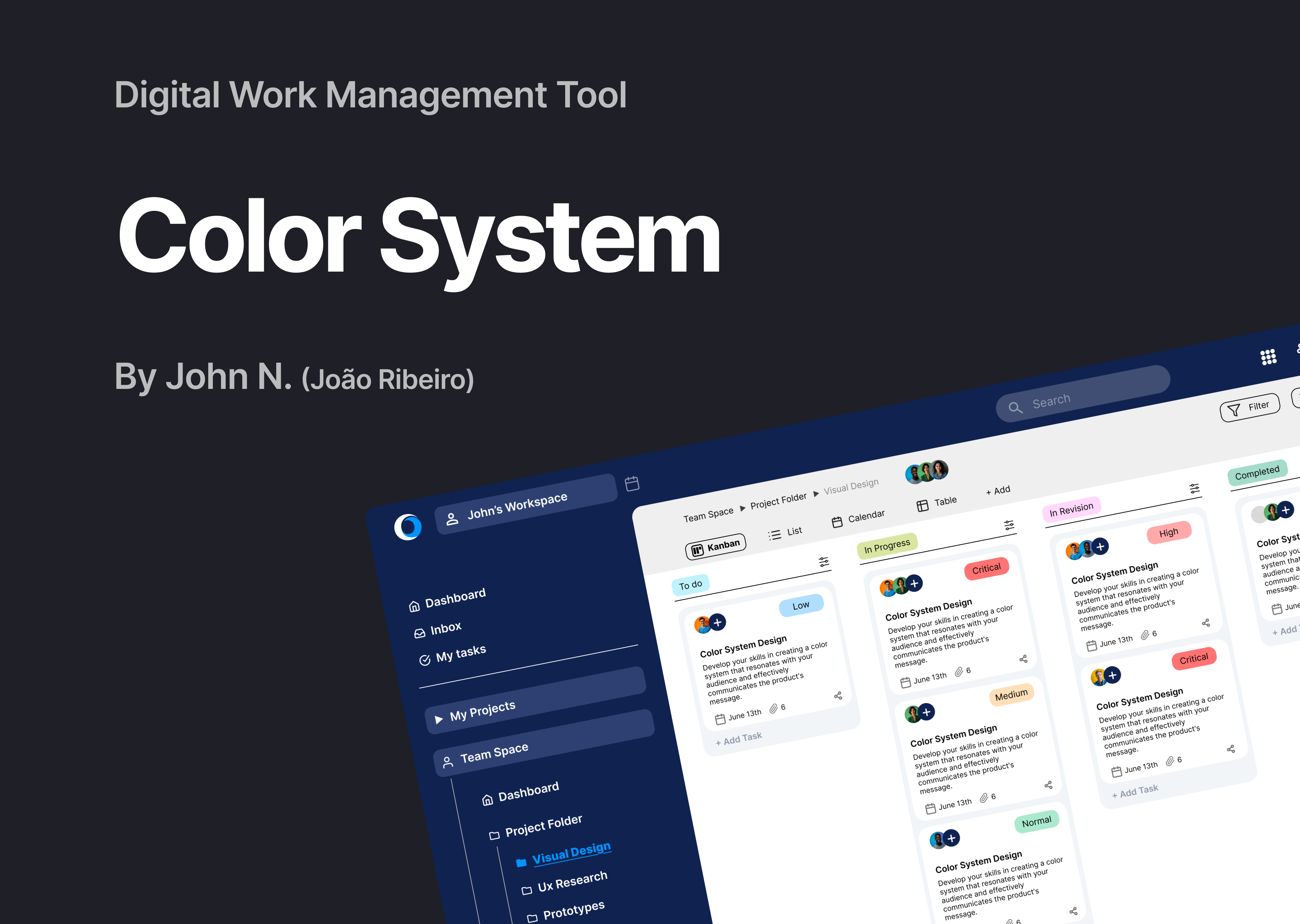 For this project, I developed a color palette system for a fictional digital work management tool. The goal was to push my UI design skills and explore visual hierarchy, accessibility, and branding. I designed a light-mode user interface for a web platform as the foundation for this system.