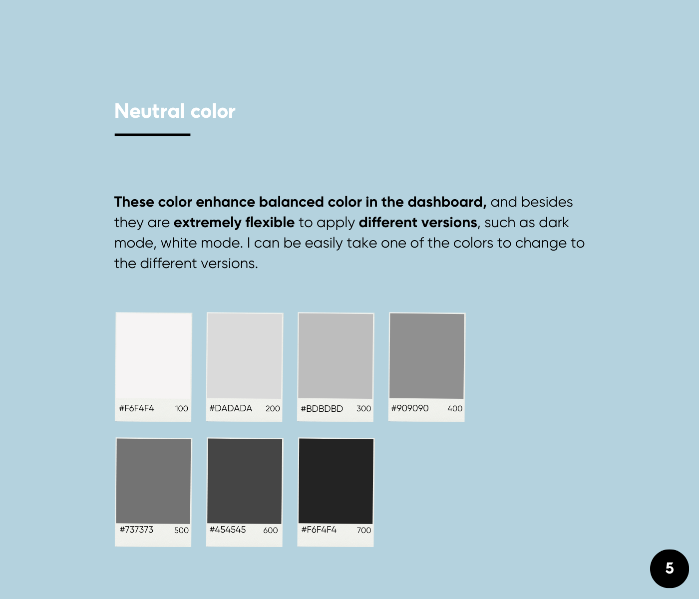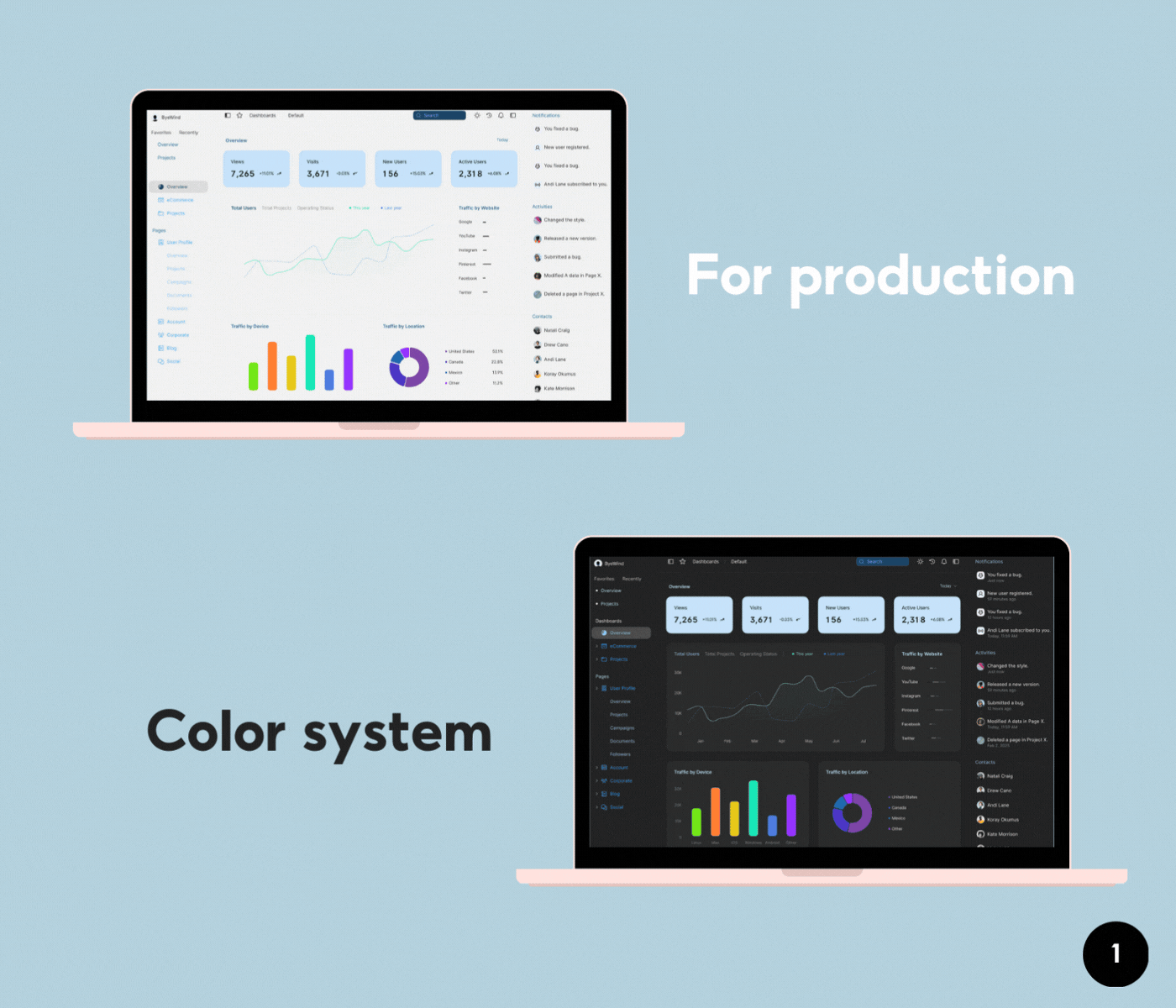 - I recommend you should have two separate color schemes for light and dark modes. It would be better to control the overall contrast and clarity of the UI design. Let's take a look at color system of Apple or Google for reference.