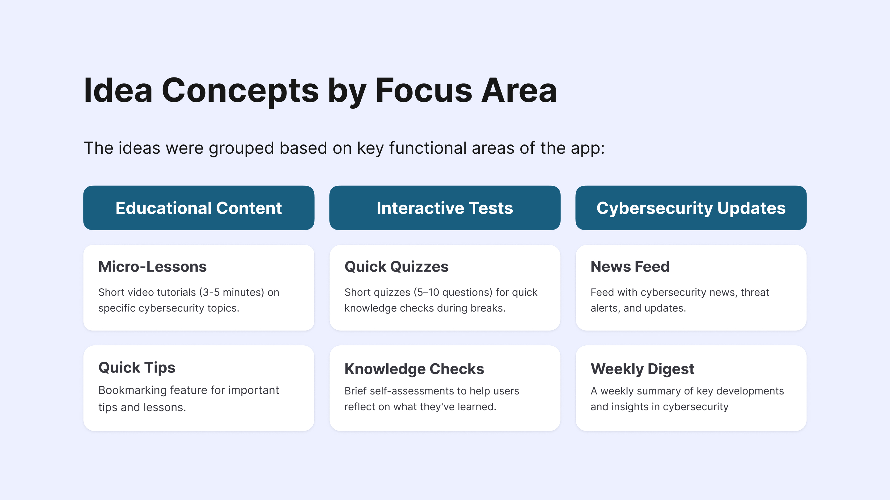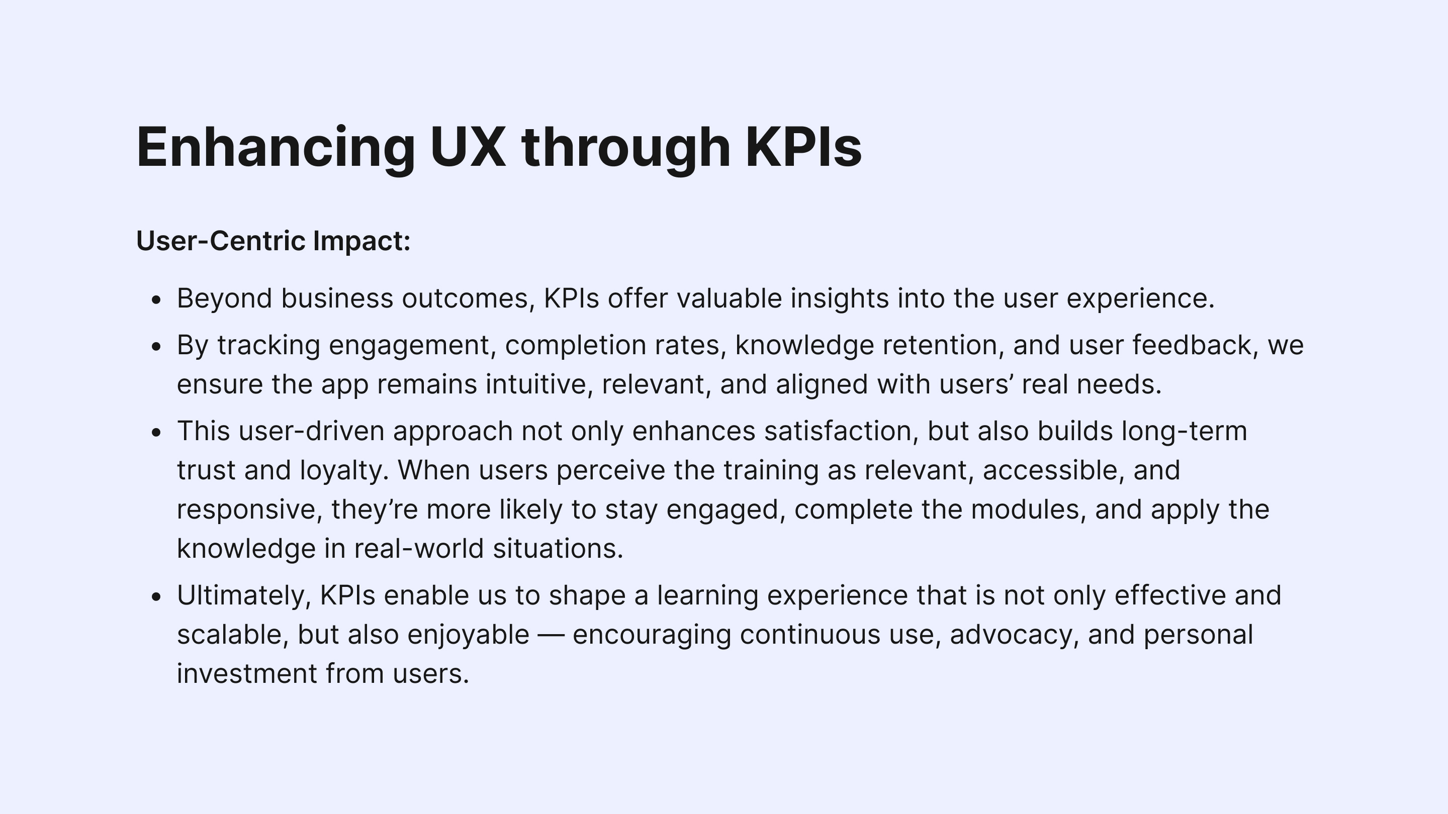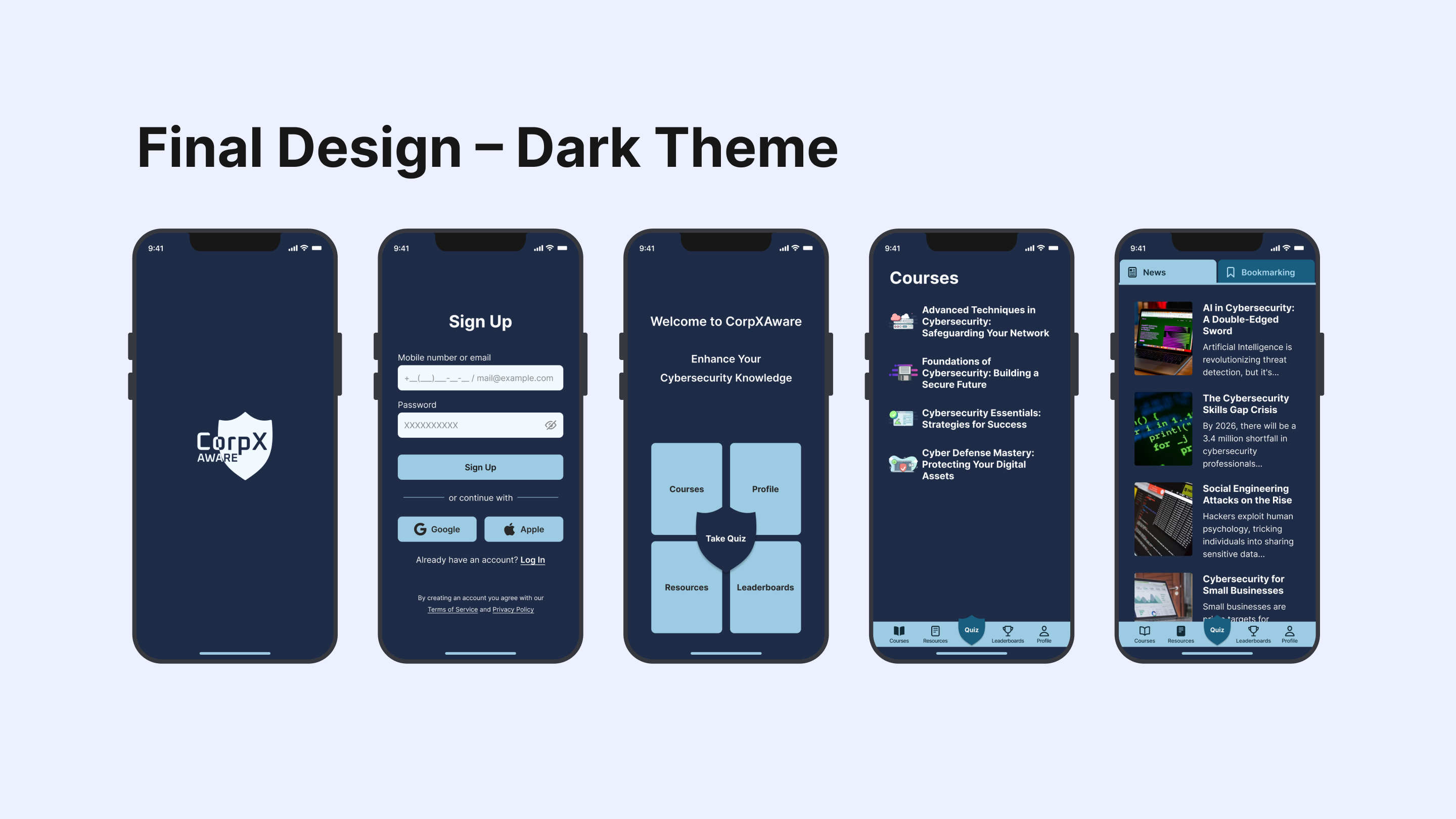 Good job, Iryina, from UI perspective, while the overall look is clean, some screens could benefit from a bit more contrast or visual emphasis on the most important actions. For example, primary CTAs and progress indicators could stand out more to guide users quickly, especially on busy or content-heavy screens. I'd also check course headings and its contrast.