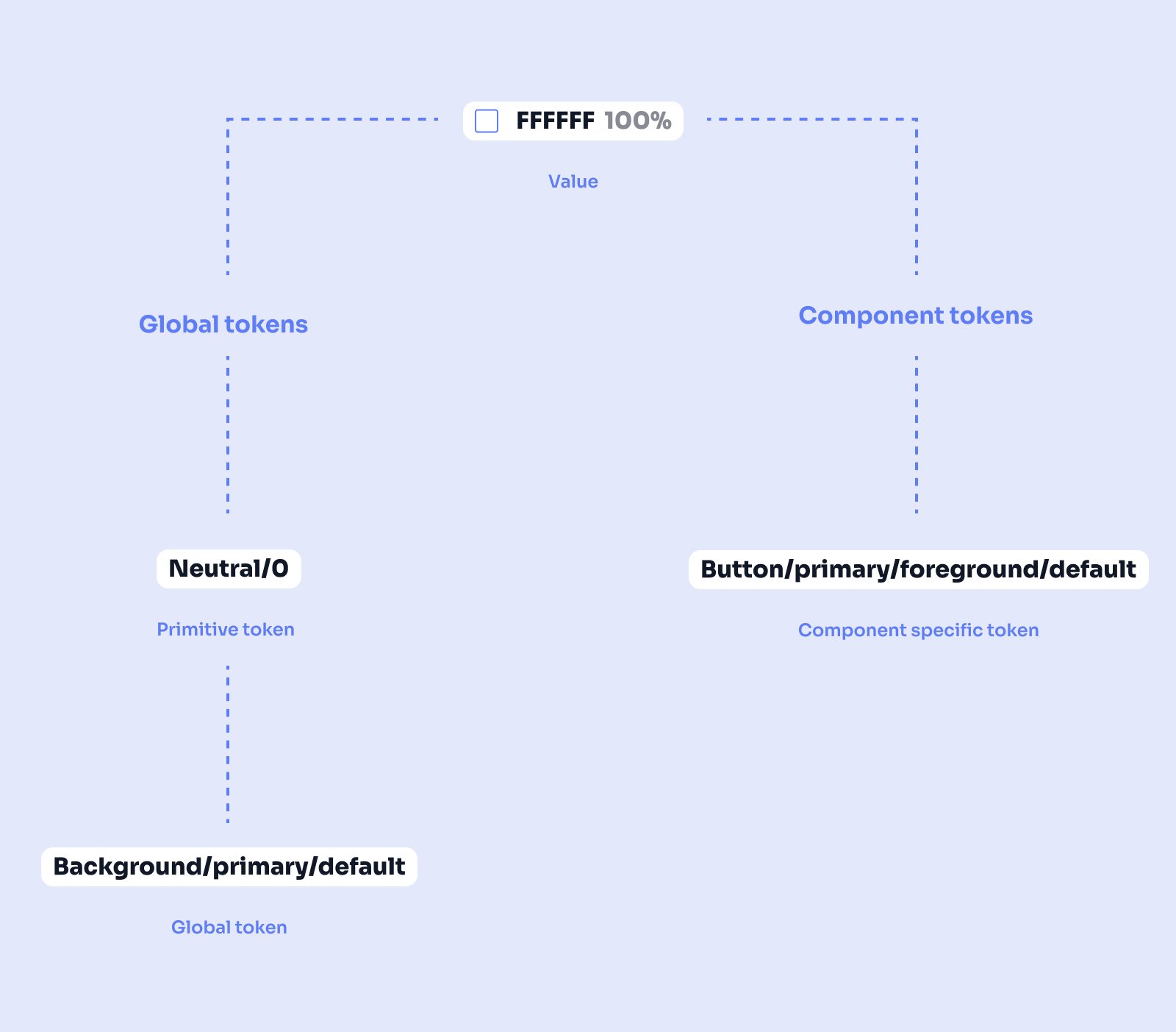 Background/primary/default - means this token is dedicated for backgrounds (pages, cards etc.) in default state.