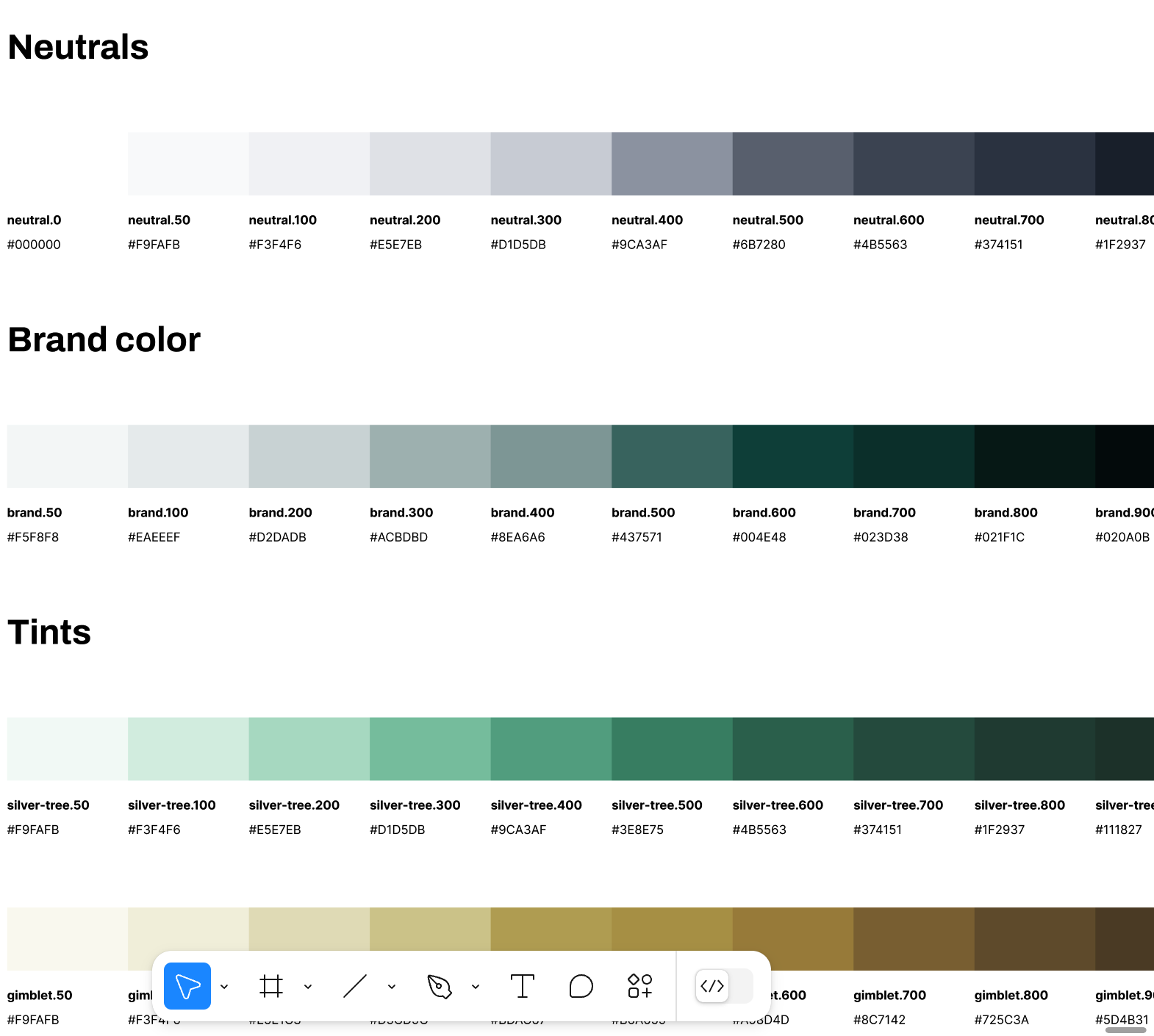 We used Tokens Studio plugin to export all tokens with values and names to json file, which was embedded in code and could be easily updated in future.