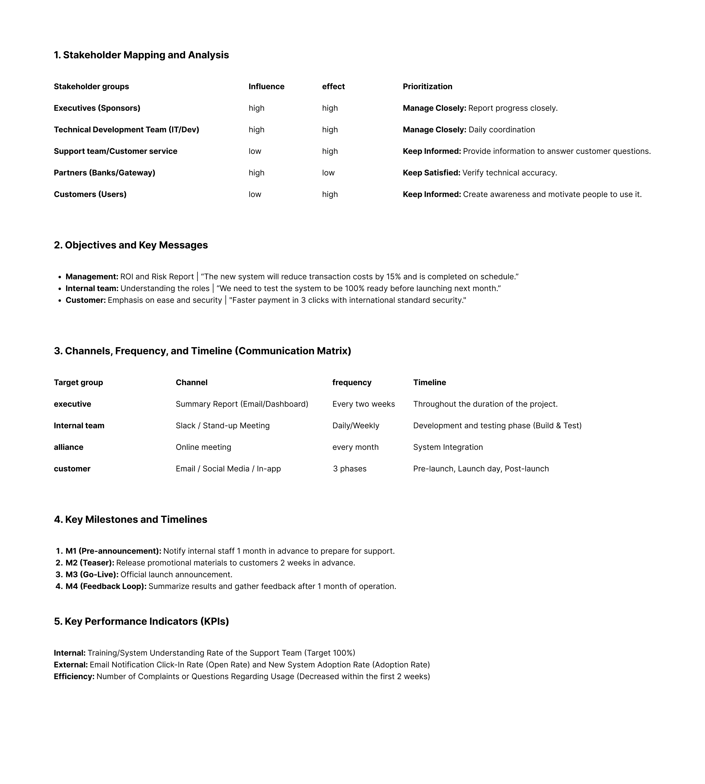 4. Key Milestones and Timelines