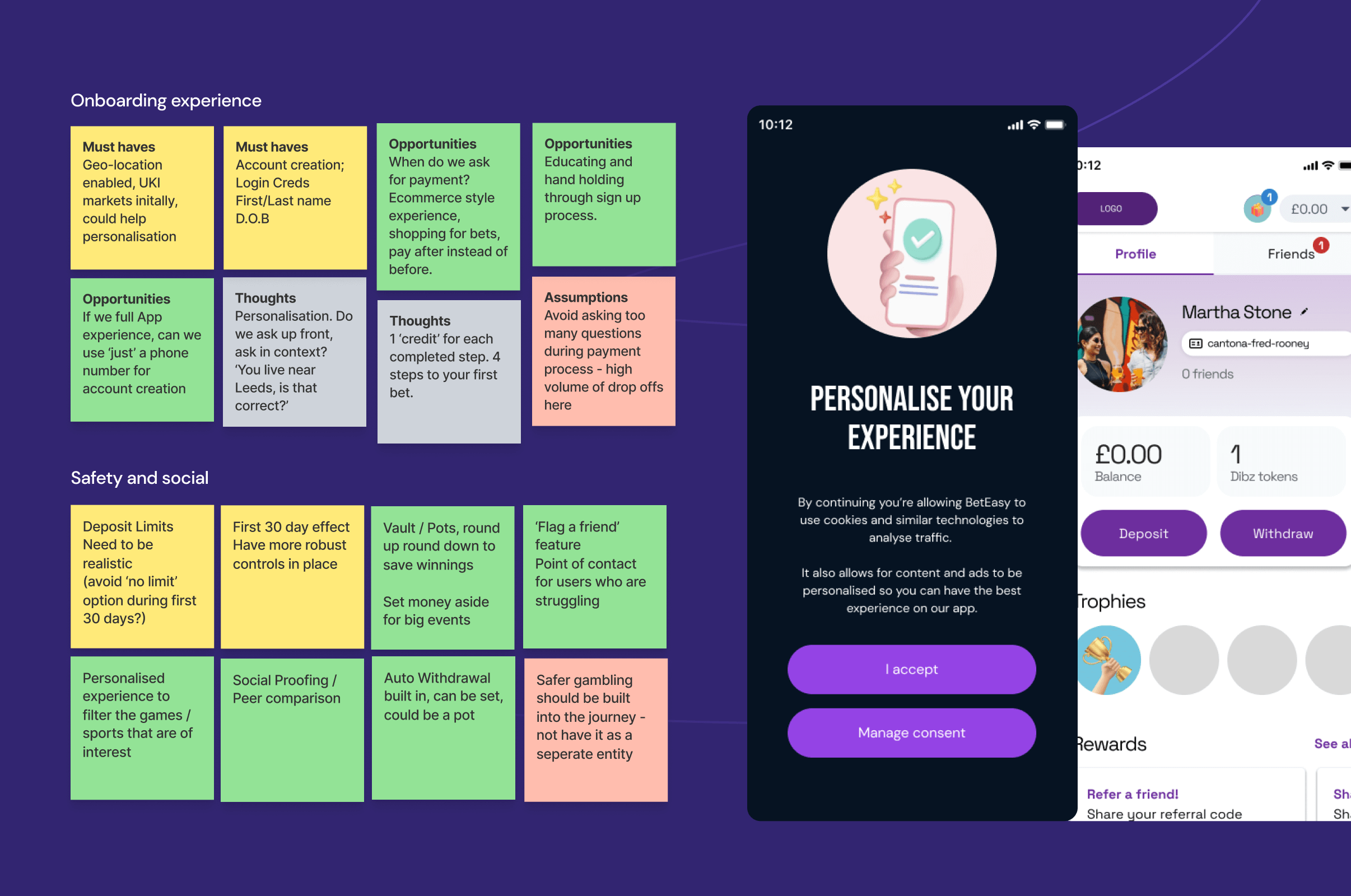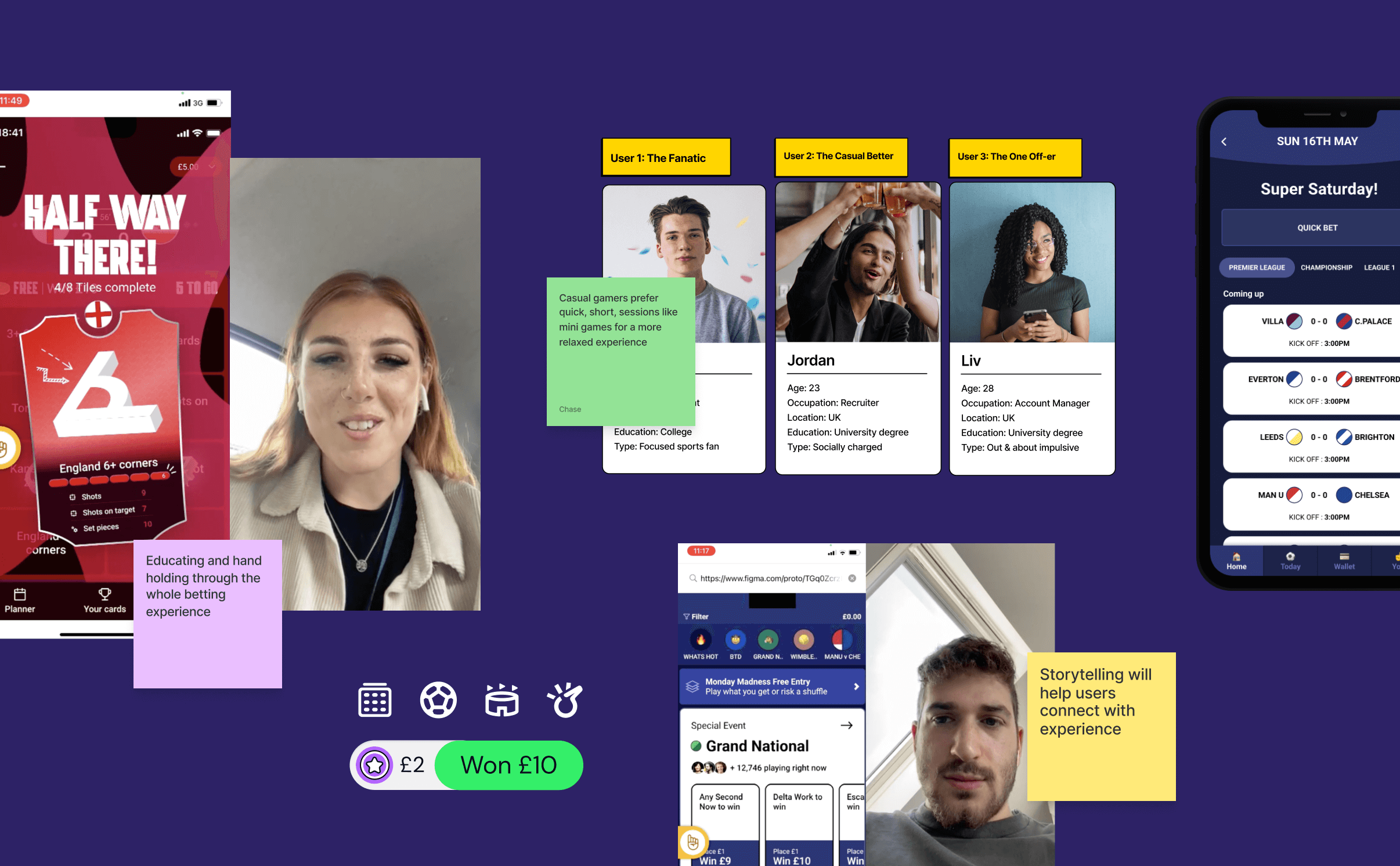 Collaboration with Flutter to launch a safety-first sports web application for first-time audiences. Led on discovery workshops, rapid prototyping to test features, conducted user testing to define key MVP concepts in order to get stakeholder buy-in.