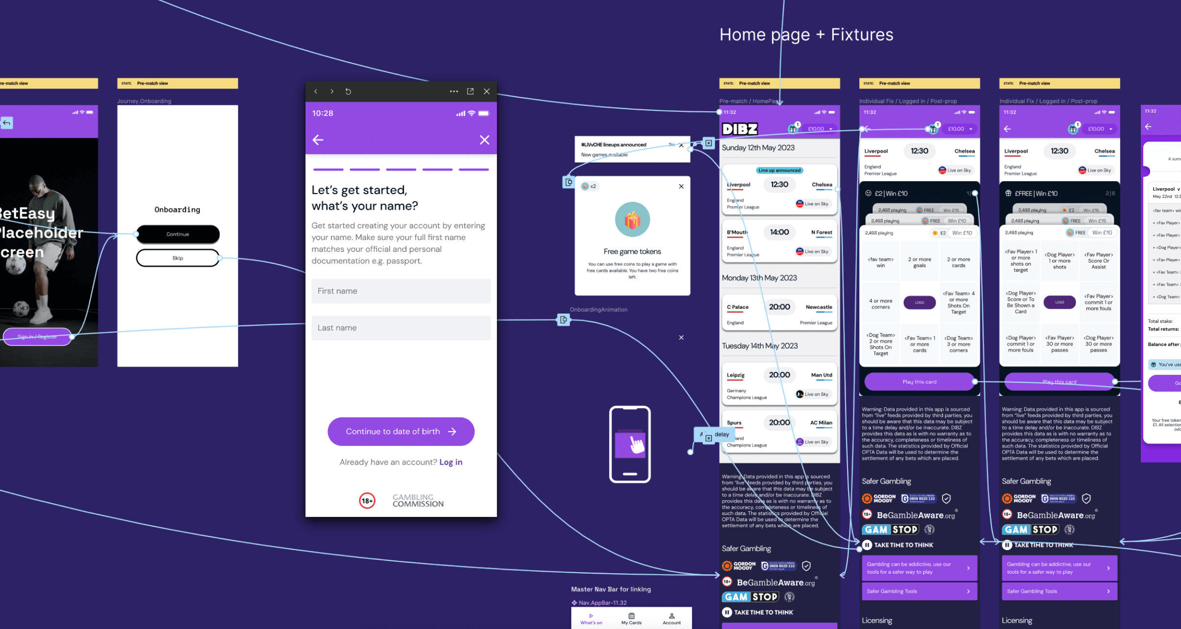 Design of fully working prototype from onboarding to win / miss states with animated micro-interactions allowed us to observe and refine the UX as the project moved into design and development.