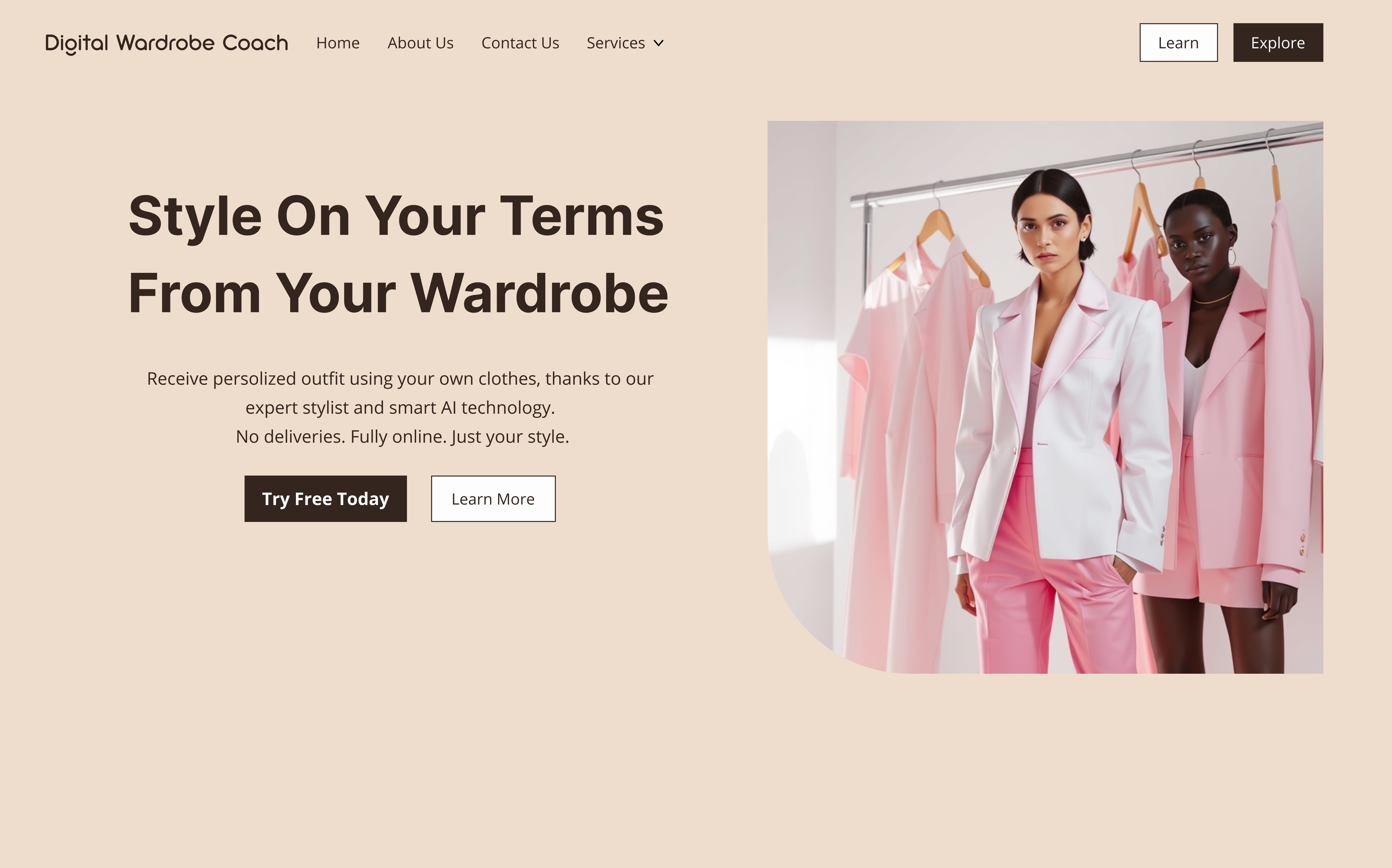 My project, which I called The Digital Wardrobe Coach Landing Page, was designed to merge functionality with emotional appeal. Inspired by competitors like Wishi and Stitch Fix, I avoided delivery dependency and impersonal AI by highlighting personalized, wardrobe-based styling.