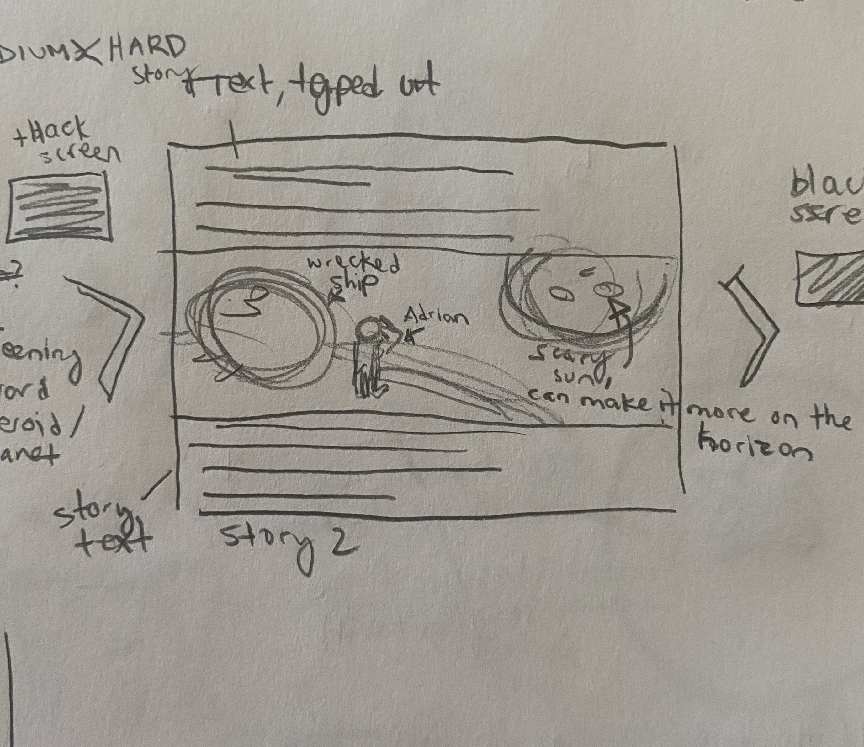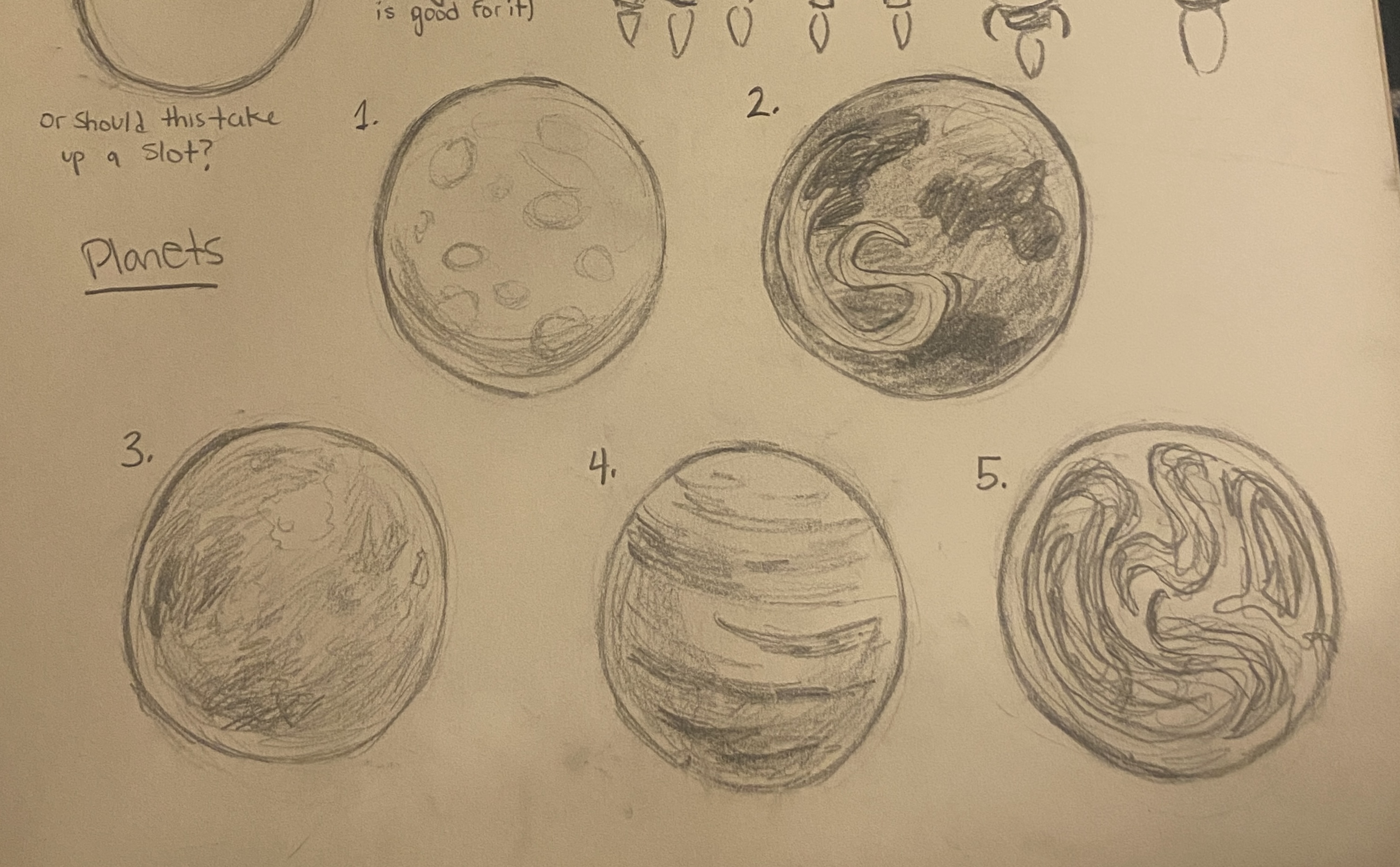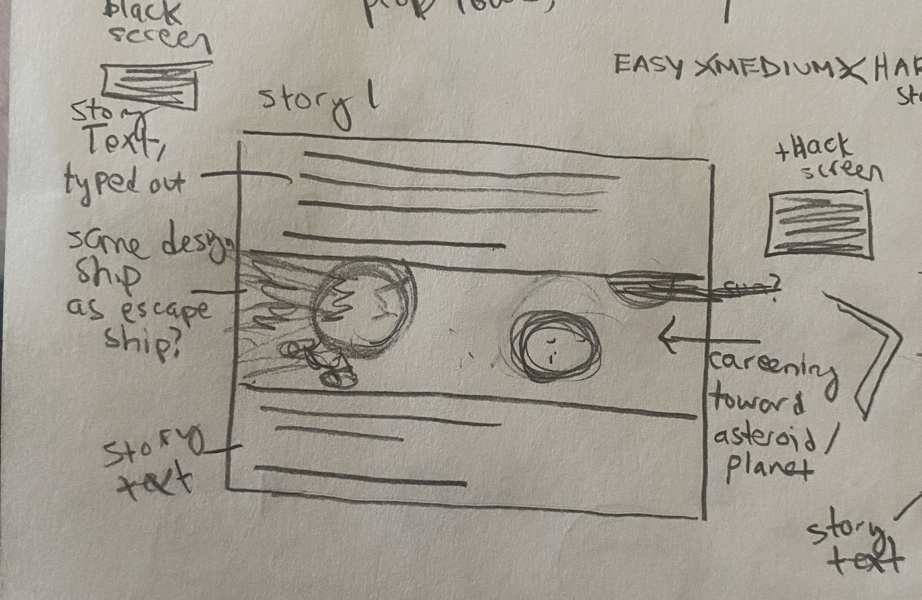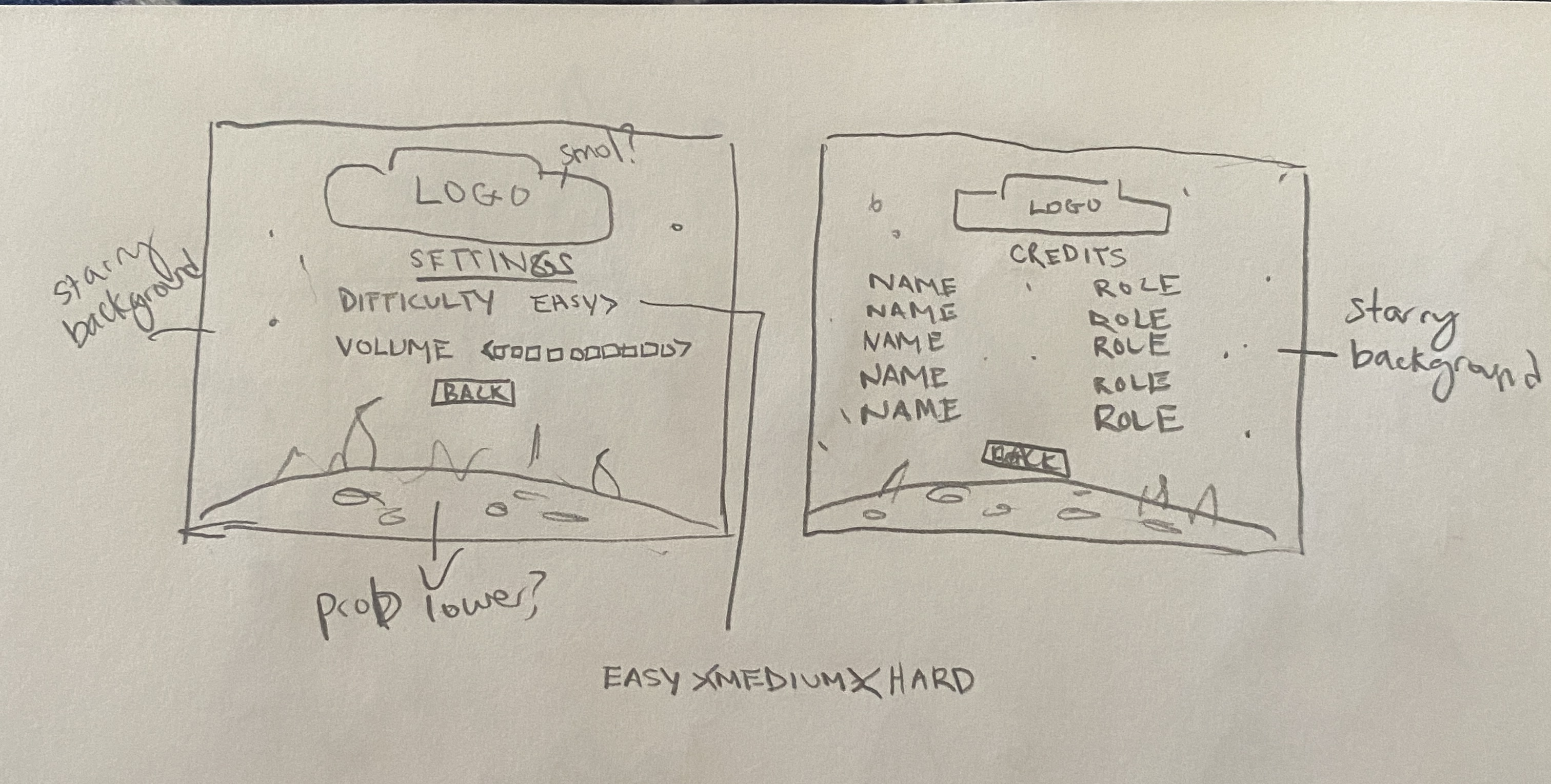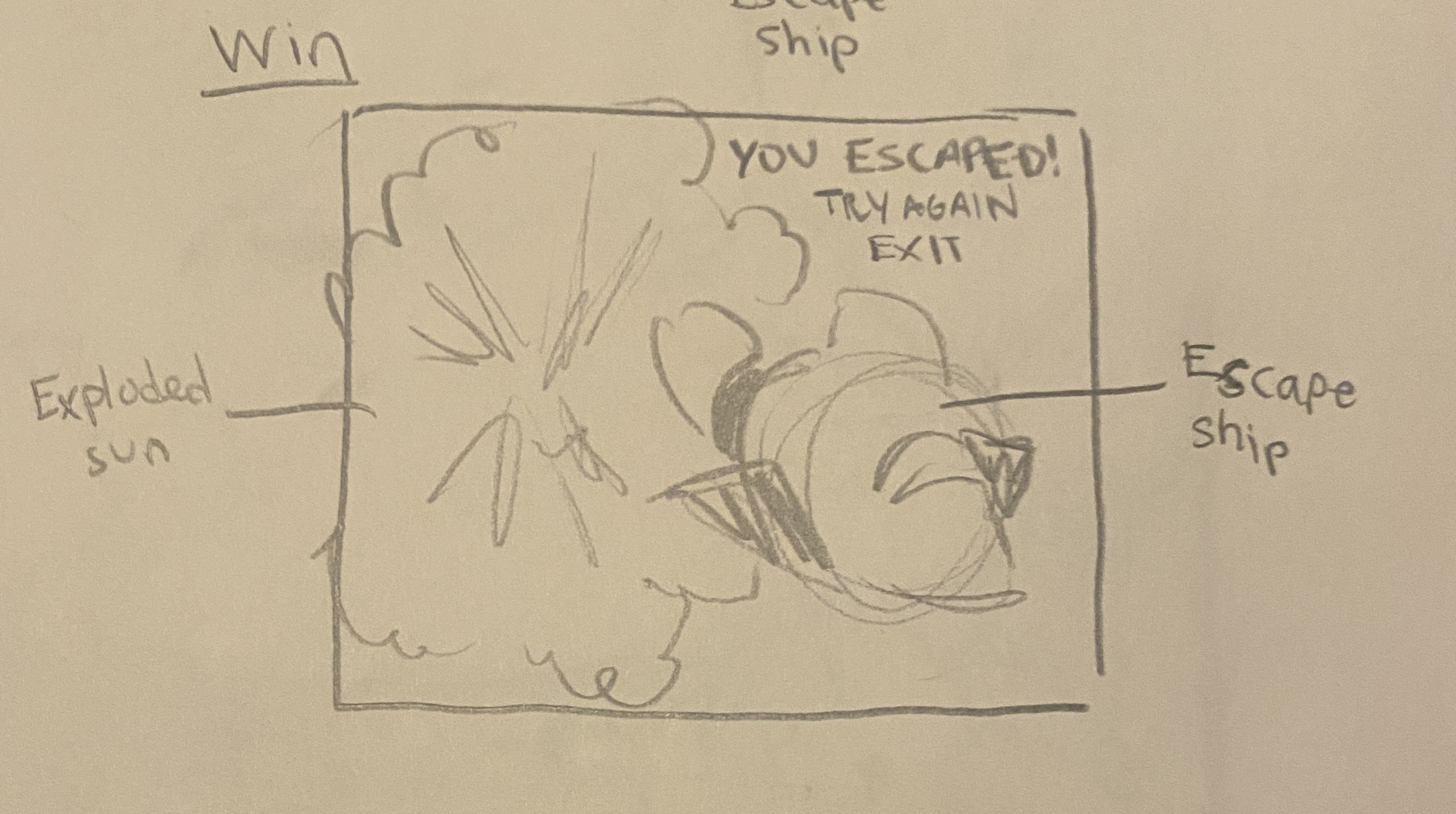 I created sketches / concept art for the enemy and escape ships, the planets, and the title / logo.