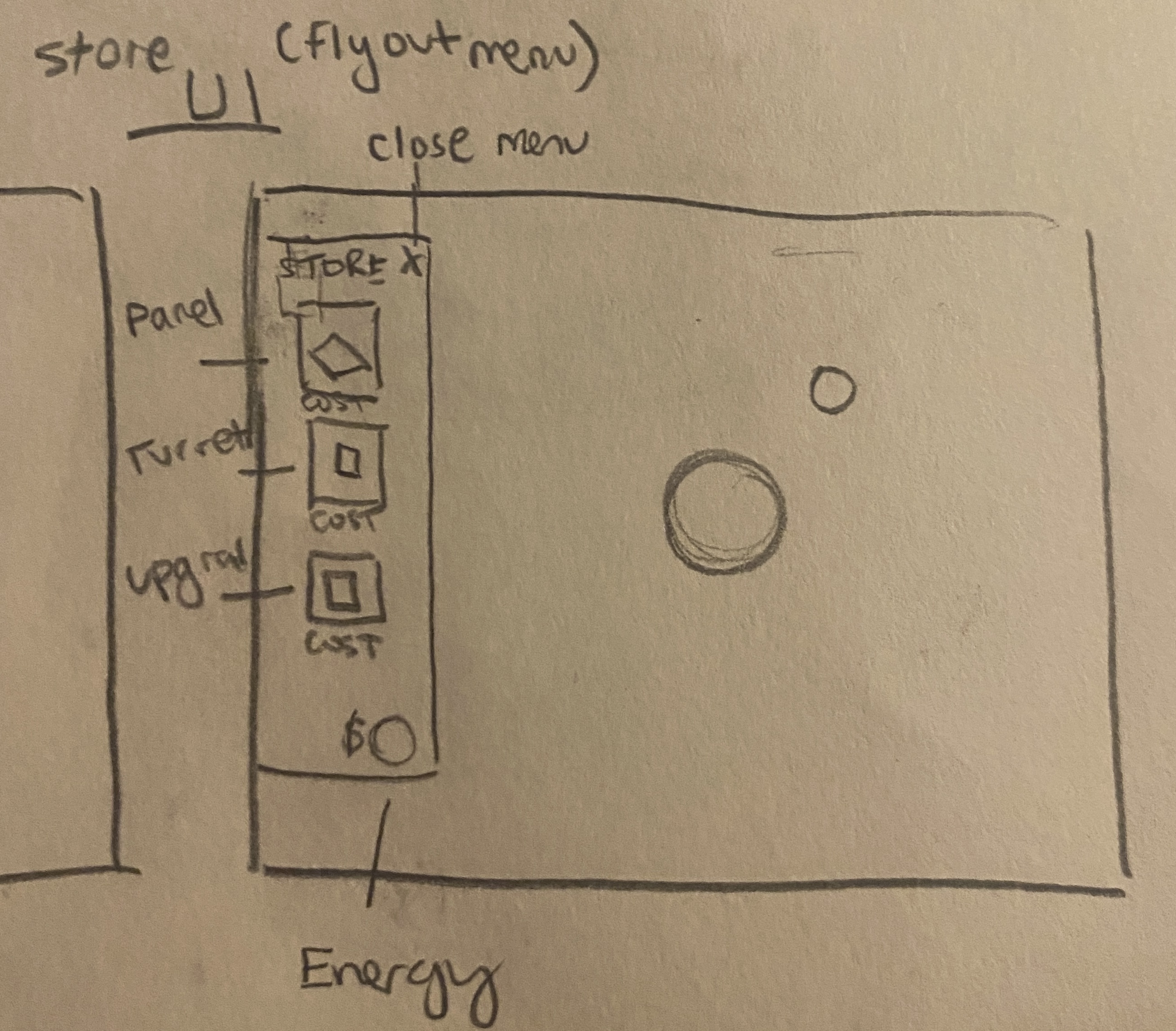 Sketch for the flyout menu to build solar panels, auto turrets, and upgrades.