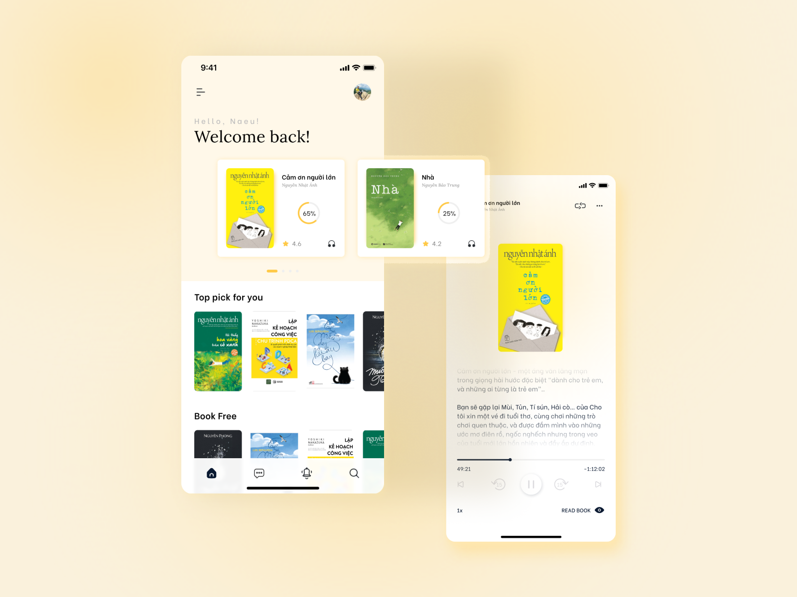 At first sight, your eBook app design looks clean and minimalistic. There are just a few things I believe that could take it up a notch.