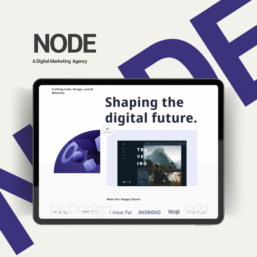 This landing page for NODE was designed as an experimental UI project to explore clean, modern, and visually appealing interfaces. The goal was to focus purely on user interface design, avoiding complex UX workflows. The hero section features bold typography, futuristic visuals, and a clear “Let’s Talk” button to draw attention. Trusted client logos were added to build credibility.
