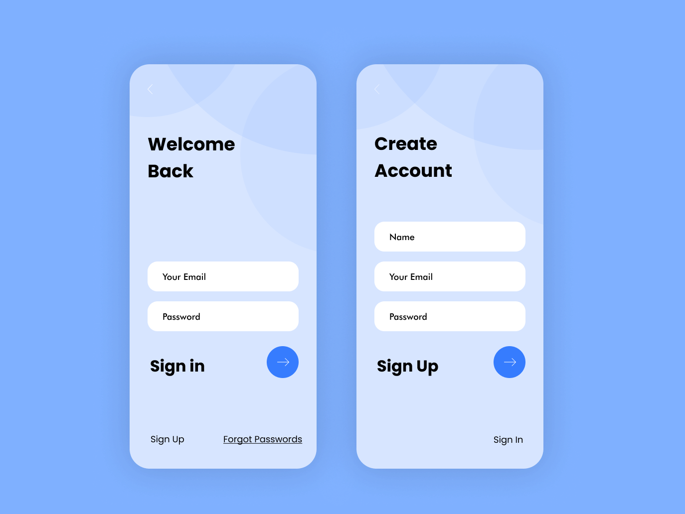 I'm really drawn to the clean, bluish color palette and the sans-serif typeface you've selected for your sign-in/sign-up page. It sets a sleek and modern tone right off the bat.