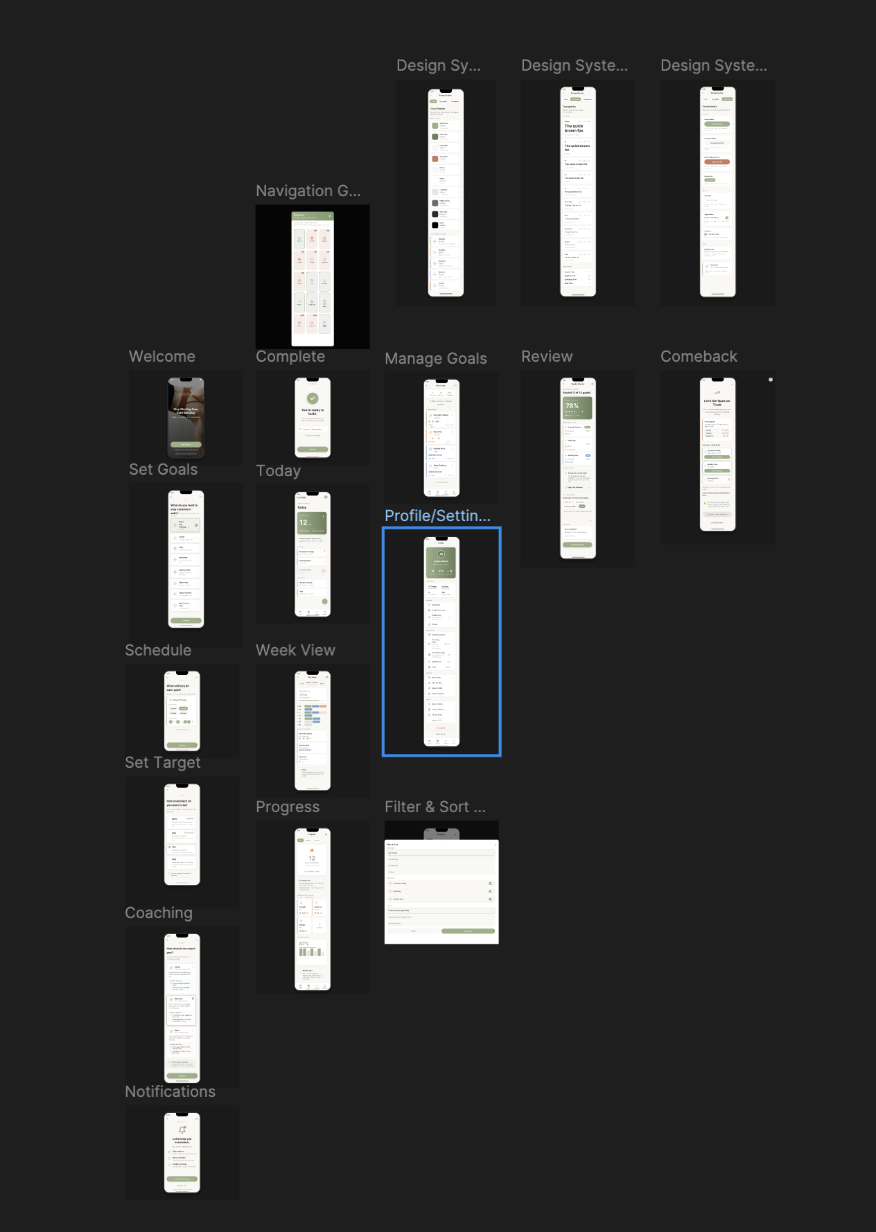 After taking the 17 UXPilot screens through Figma Make for refinement, I ended up with 19 final screens:
