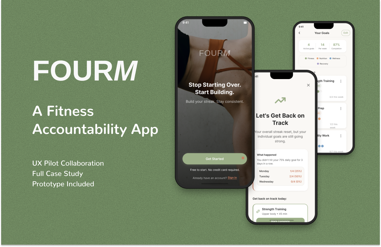 FOURM is a fitness accountability app built on consistency over perfection. FOURM combines the four pillars of sustainable fitness (Effort, Consistency, Diet, Recovery) with form—your foundation, what you're building toward.