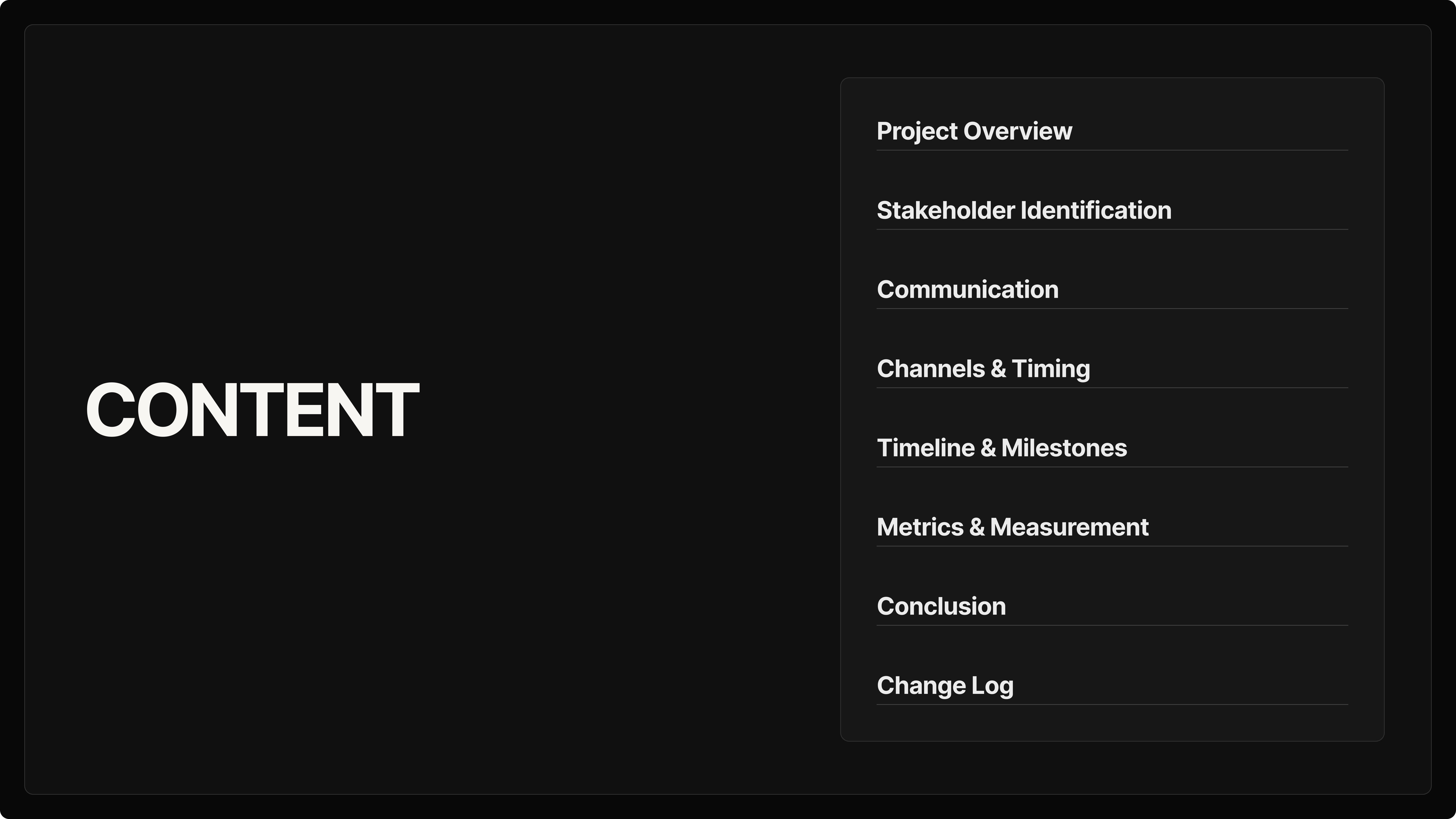 In this body of text I will share the slide and my thought process behind it right after, within the link you will be able to access the prototype file without the extra explanation, that is, the actual communication plan.