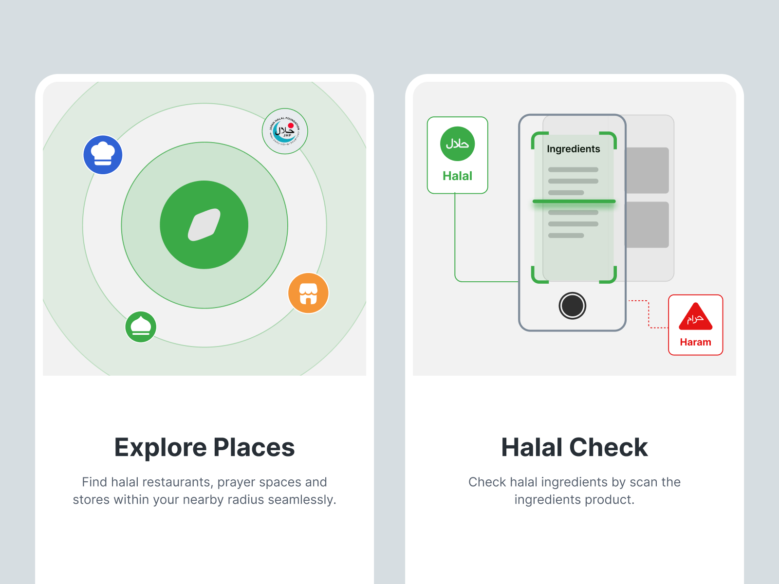 - The content is well-targeted for the app's audience, providing a strong sense of how it addresses specific needs for halal food and prayer spaces.