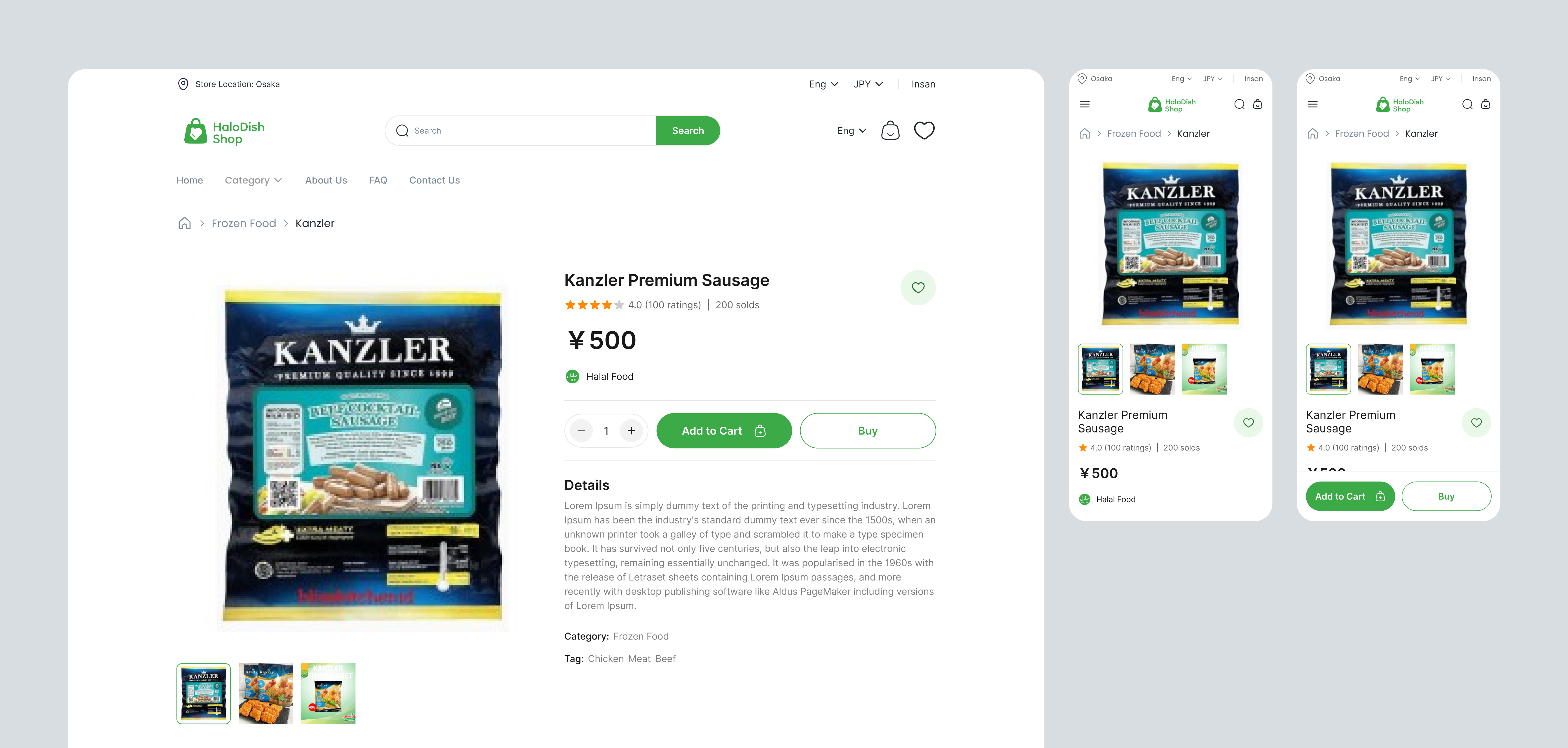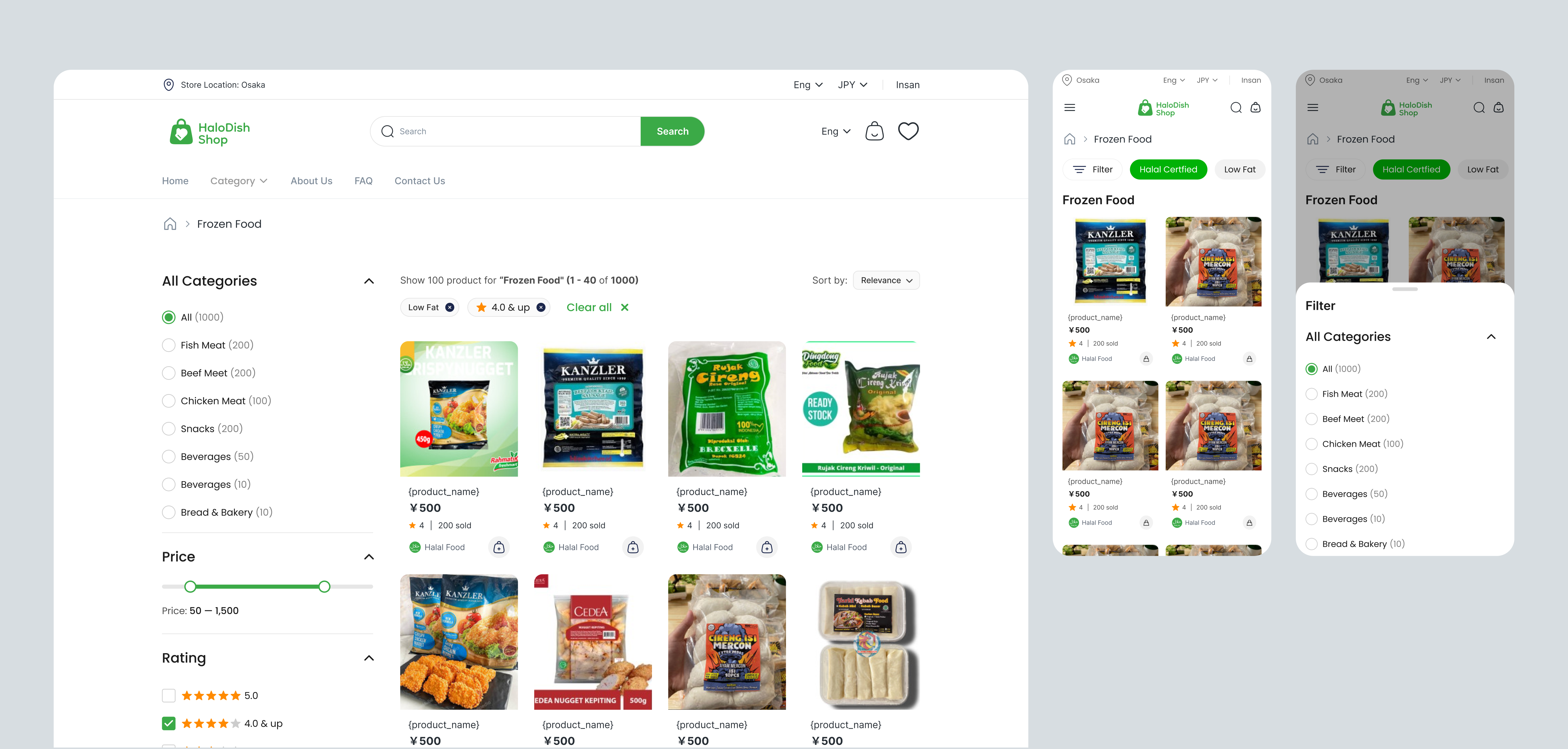 The HaloDish Shop application presents a clean and functional approach to e-commerce, specializing in halal products. Its strengths include clear visual hierarchy, mobile responsiveness, trust-building elements, and a streamlined purchase process. Areas needing improvement include the product details page (currently containing Lorem Ipsum), the filtering system (could be more robust), and empty states. Without deeper business context, it's difficult to fully evaluate the project's effectiveness, but it provides a solid foundation for a halal product sales platform, with a good balance between functionality and simplicity. Overall great work! 💪🫡