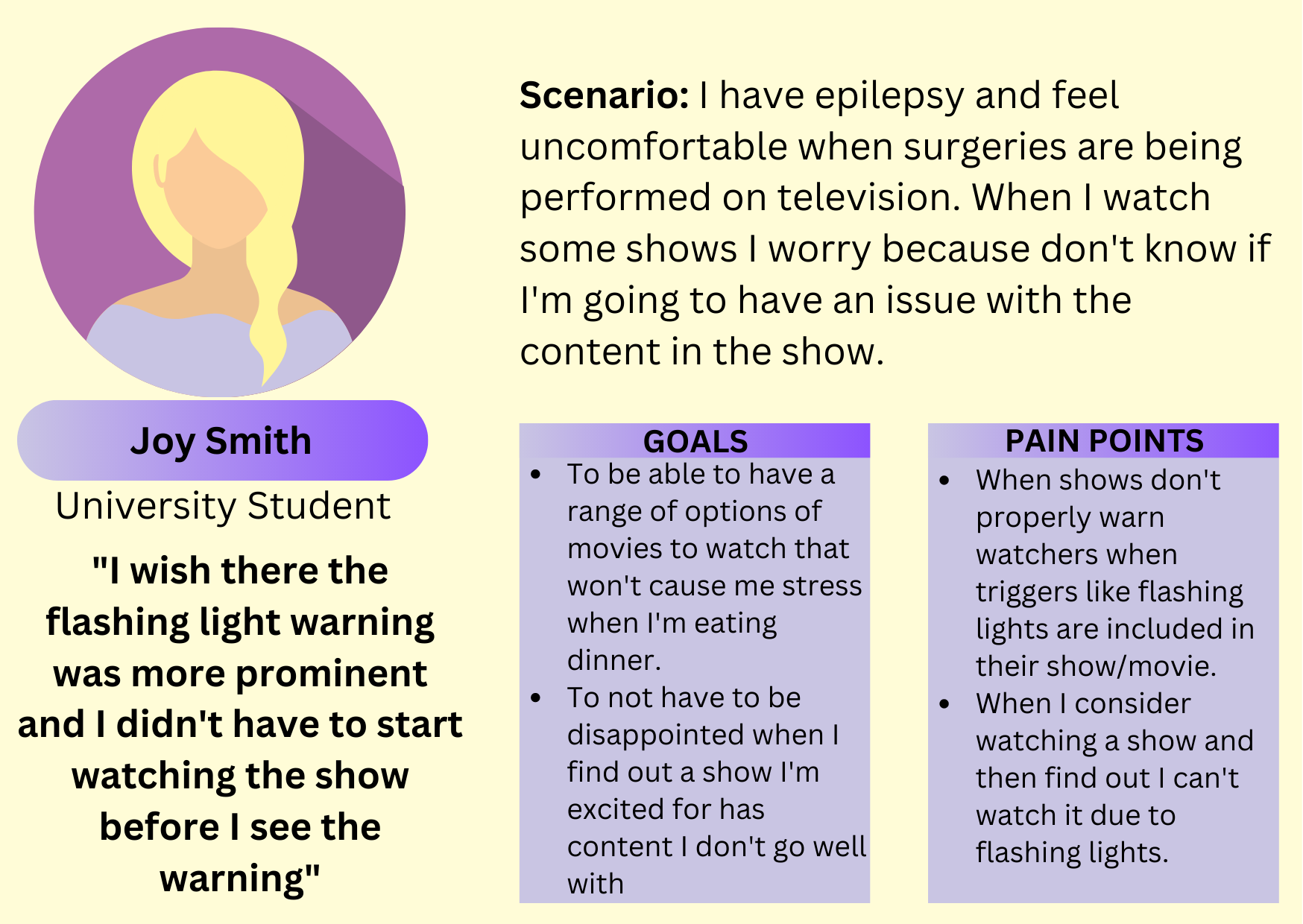 - People with health problems like epilepsy don’t want to watch half of a tv series only to see the trigger warning on the series finale and then be unable to watch it.