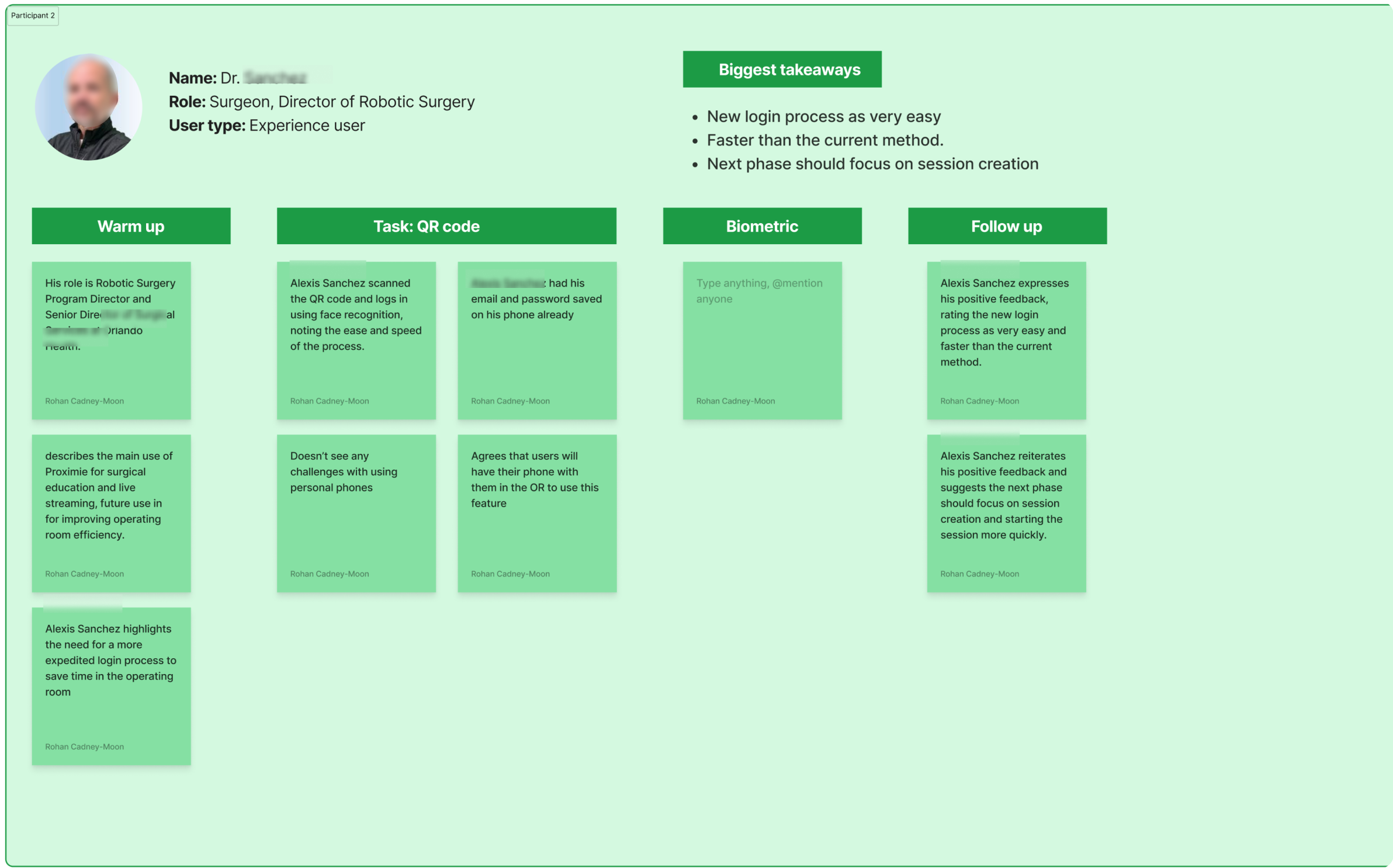 Working with the lead Engineer, we developed a working QR code login prototype and conducted usability testing with eight surgeons and OR staff to validate and iterate the chosen solution.