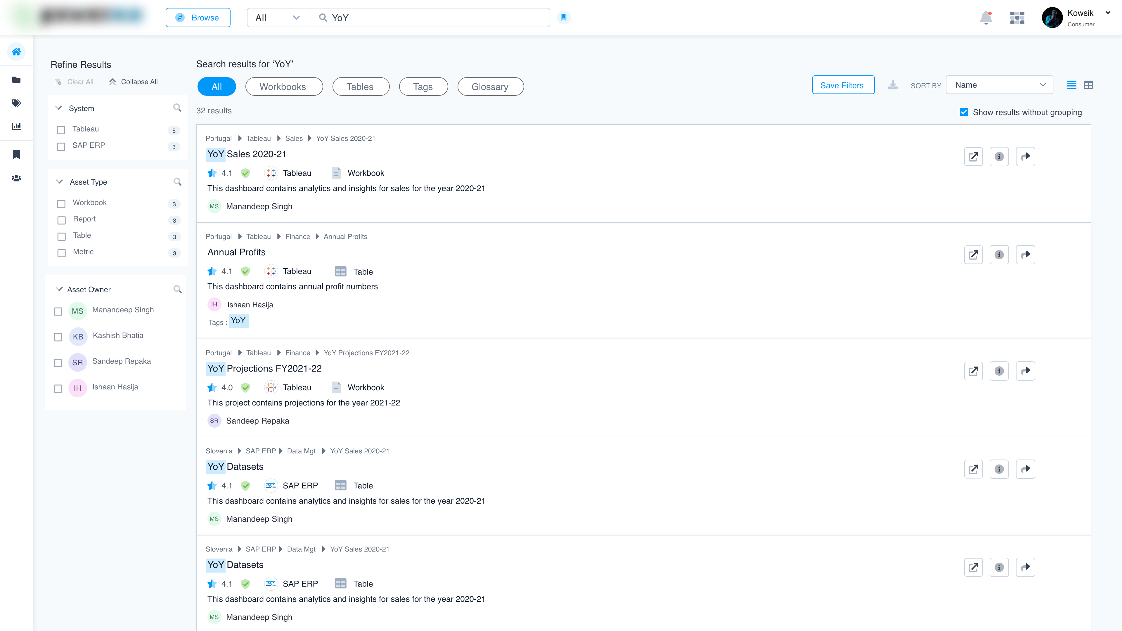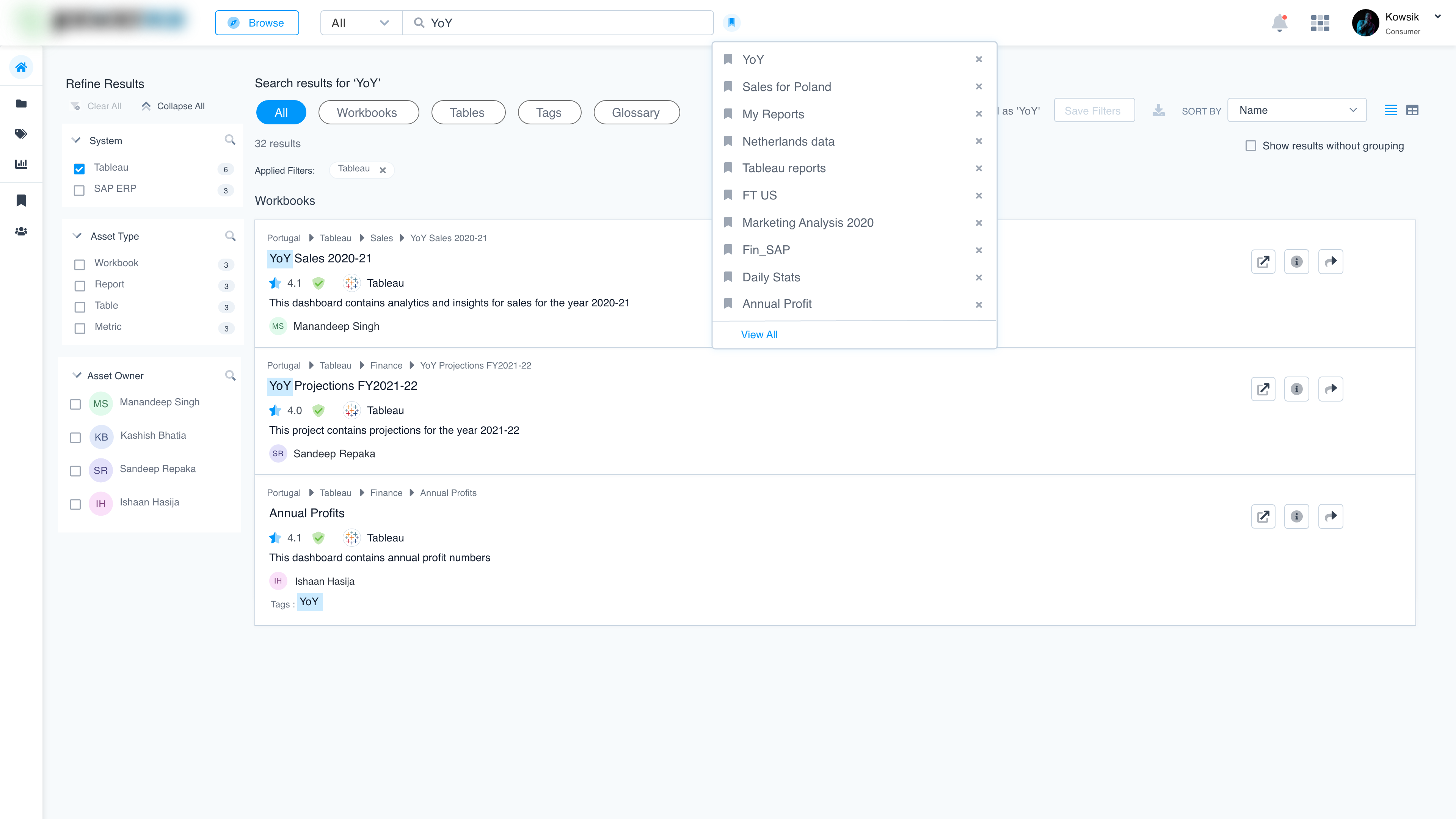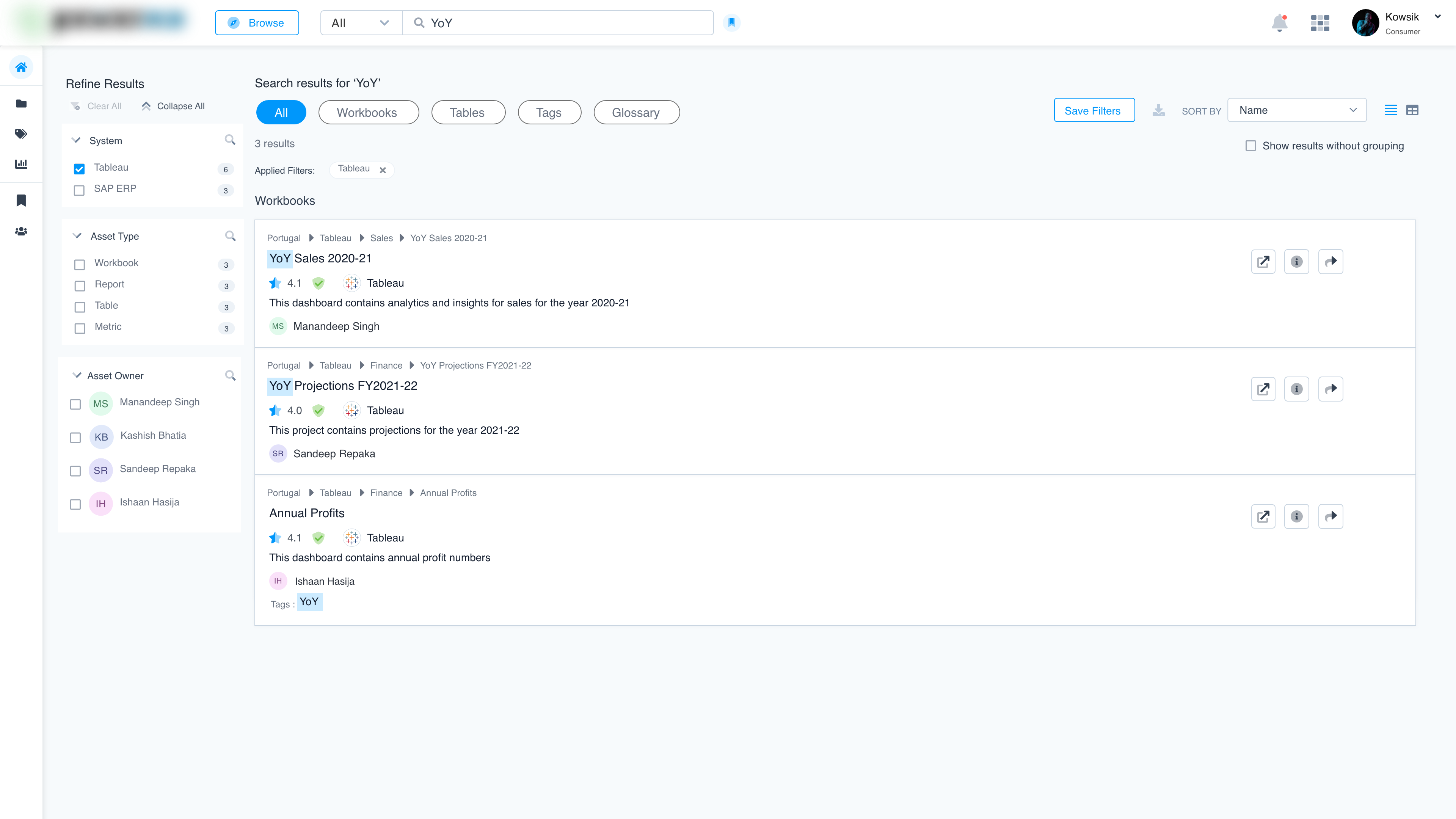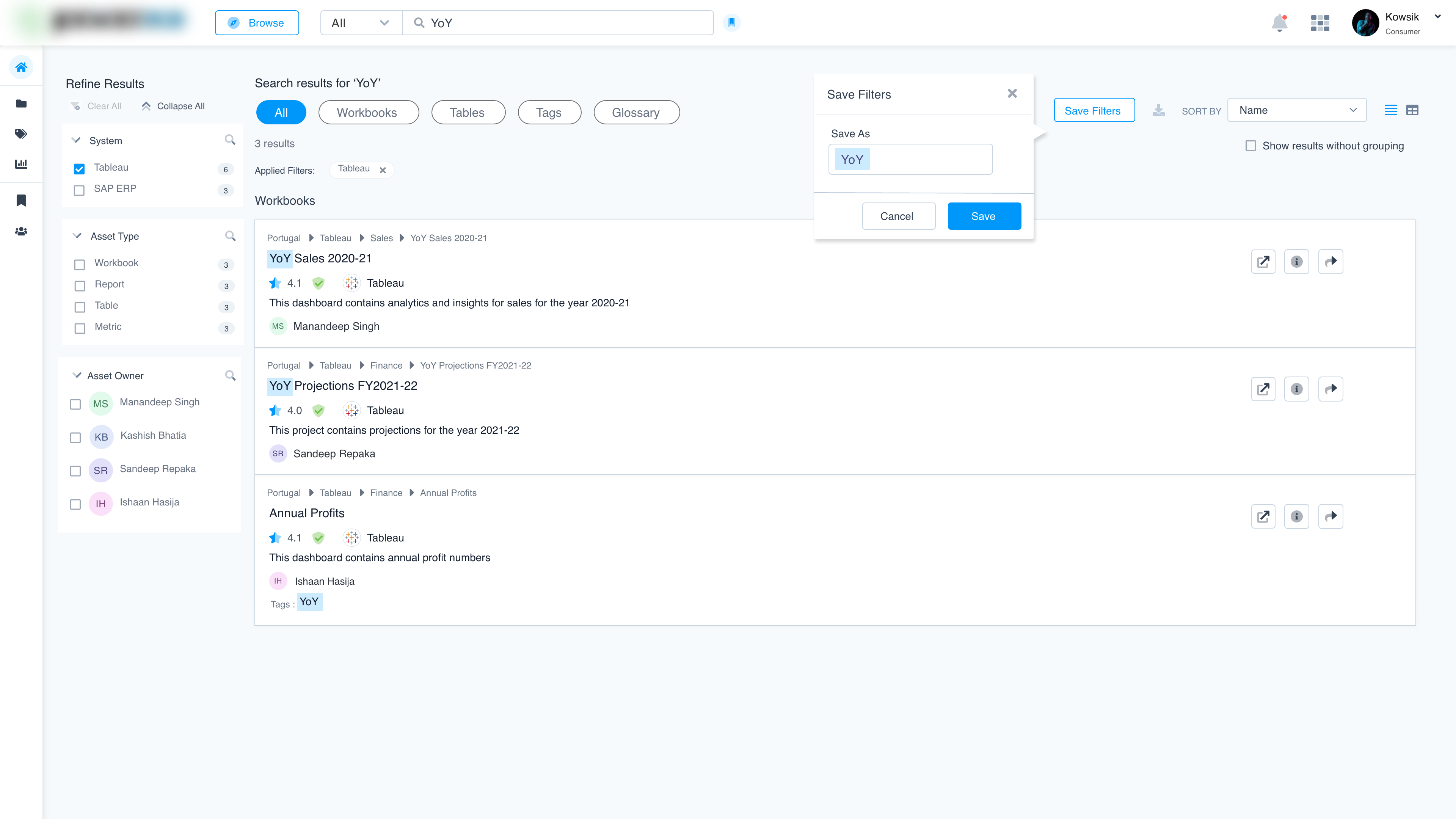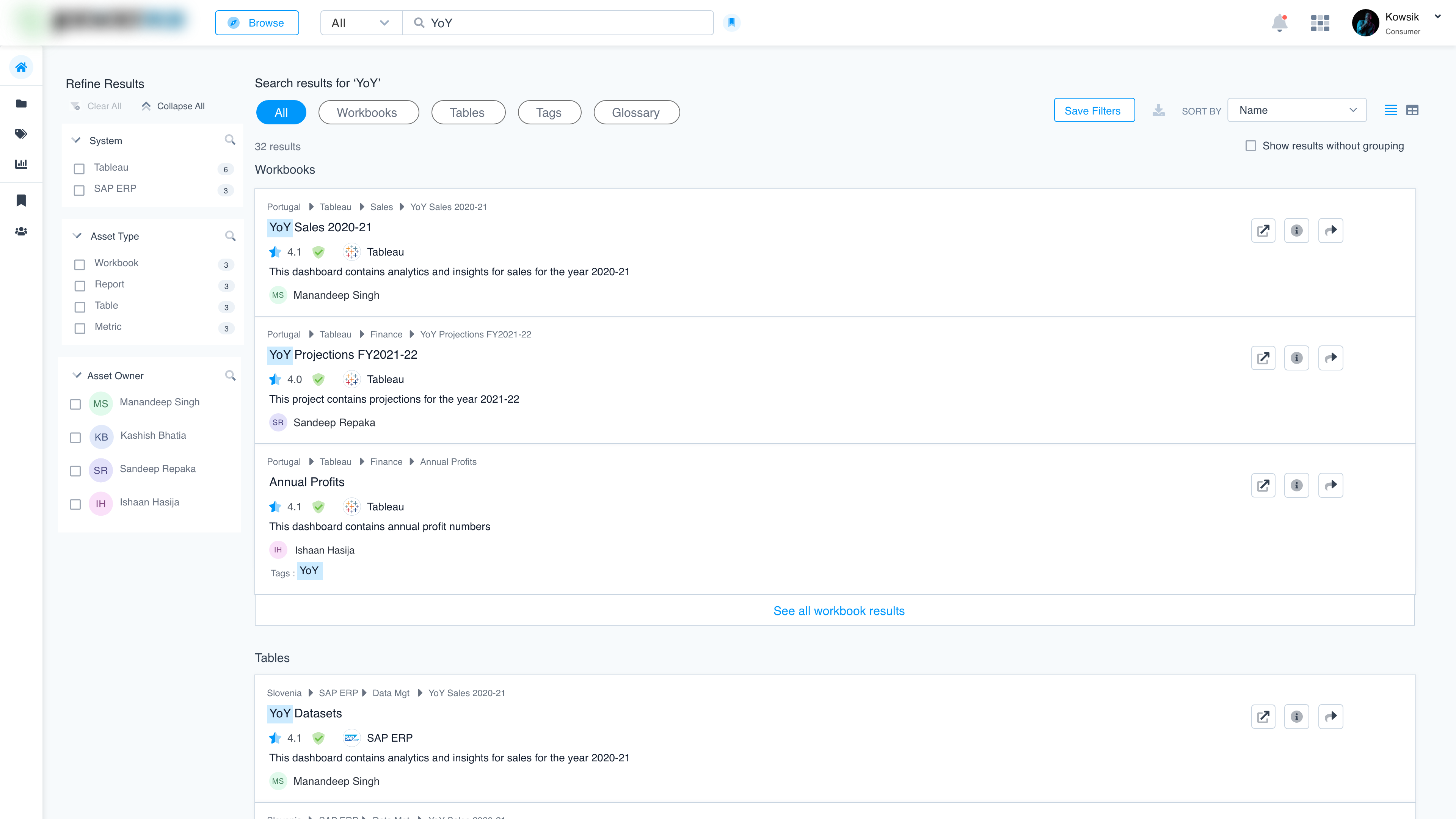 - Searchable Catalog: A centralized interface for users to find all relevant BI & analytics assets.