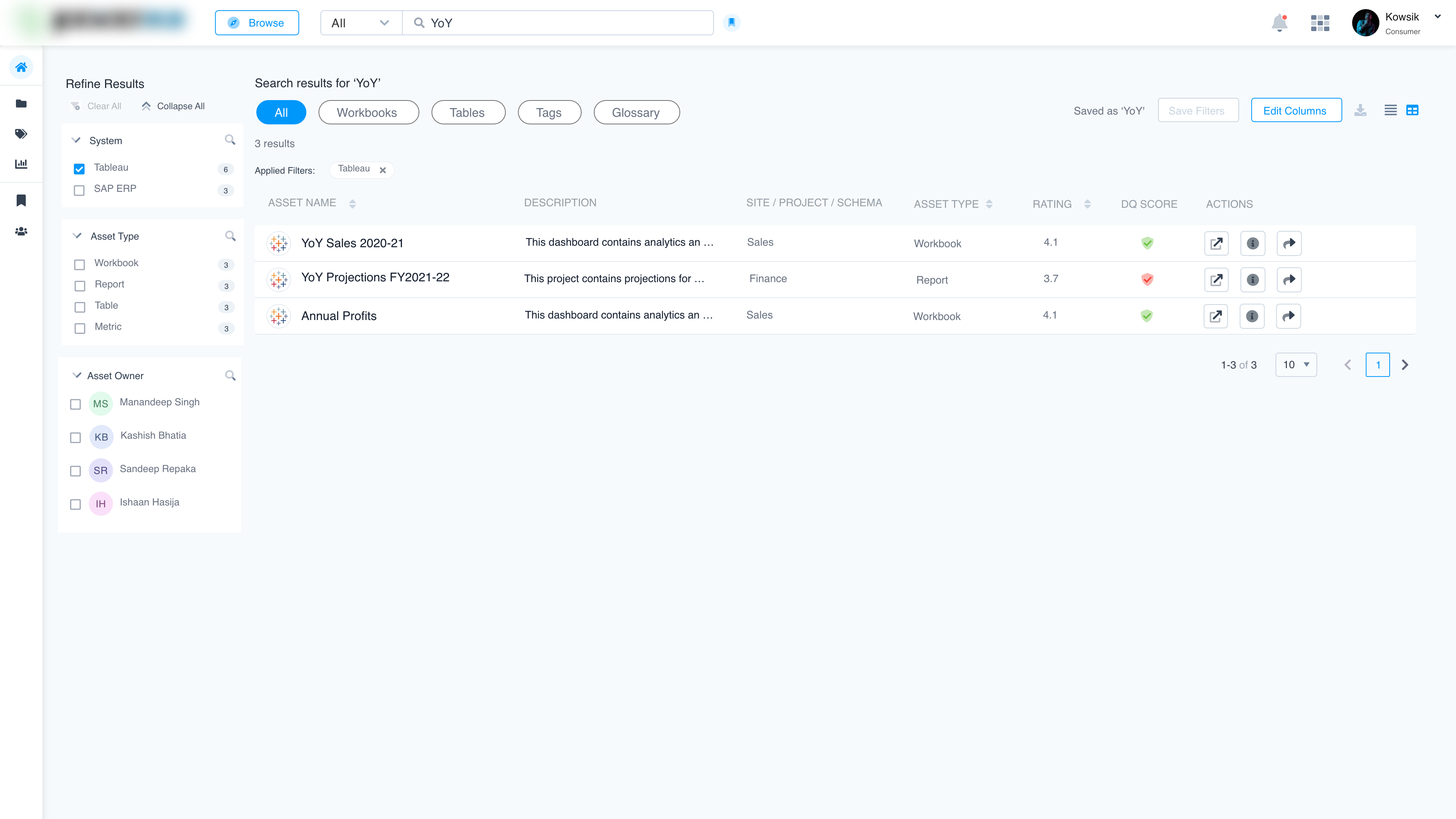 - Reduction in time taken to locate relevant data assets.