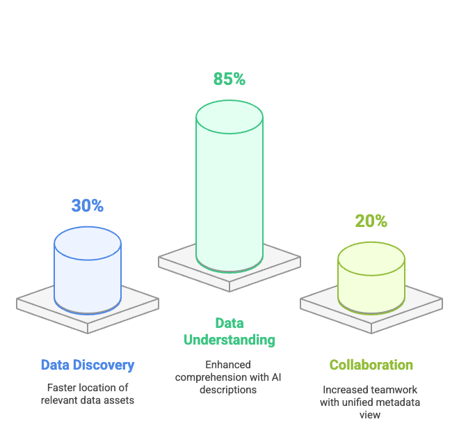 - Users were able to locate relevant data assets 30% faster compared to their previous workflows.