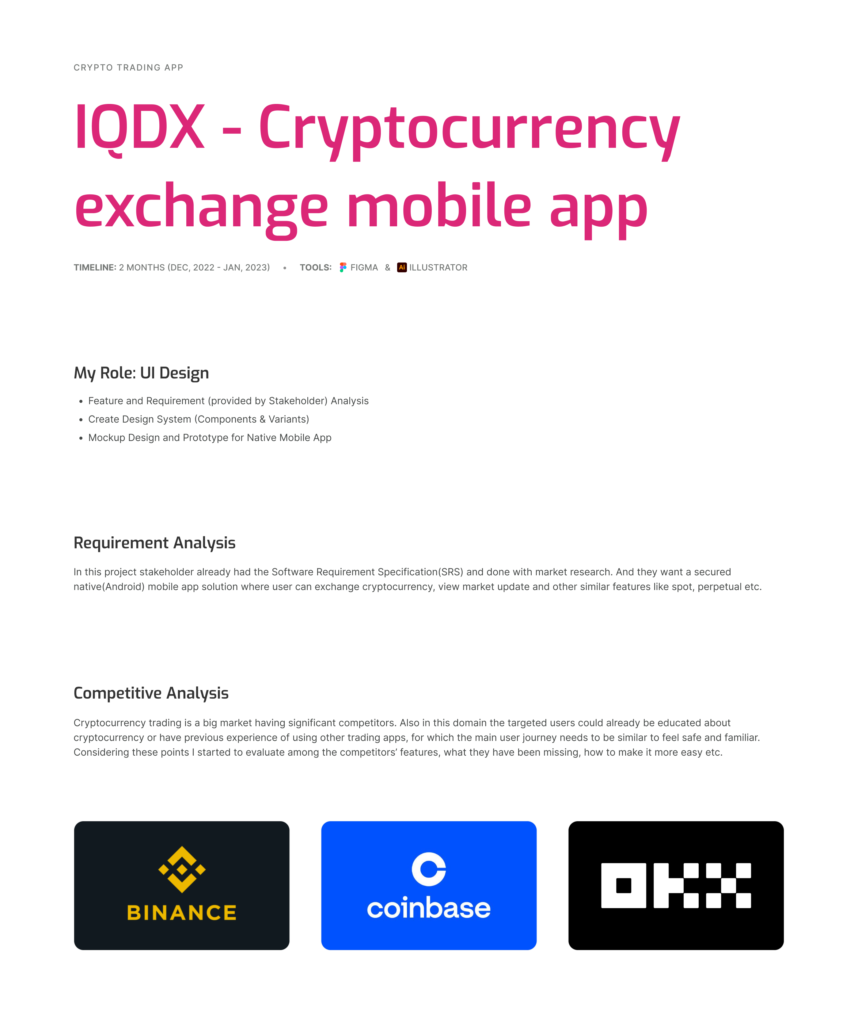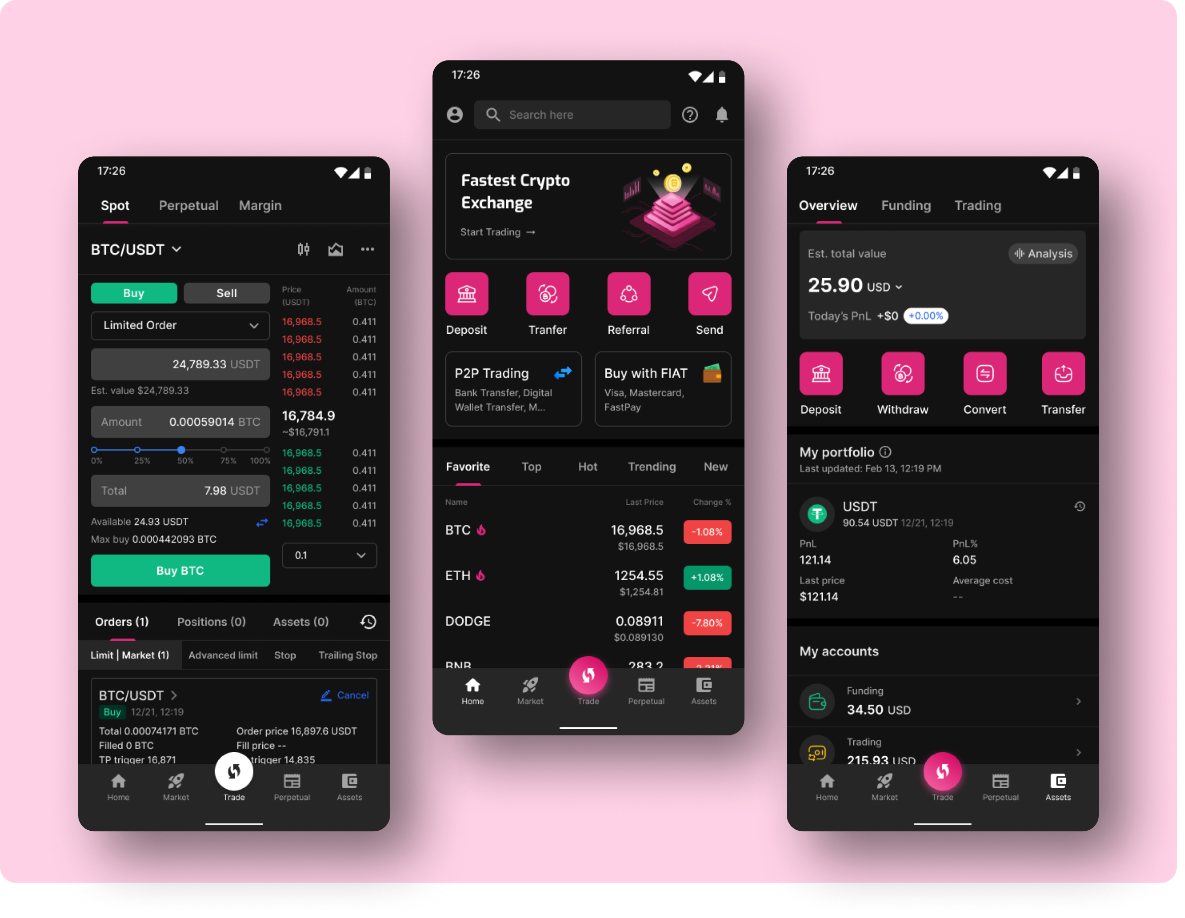 Cryptocurrency buy and selling mobile application with other features such as Market Analysis, P2P Trading, Spot, Perpetual. Detailed overview of portfolio having options for deposit, withdraw, convert and transfer currency instantly.