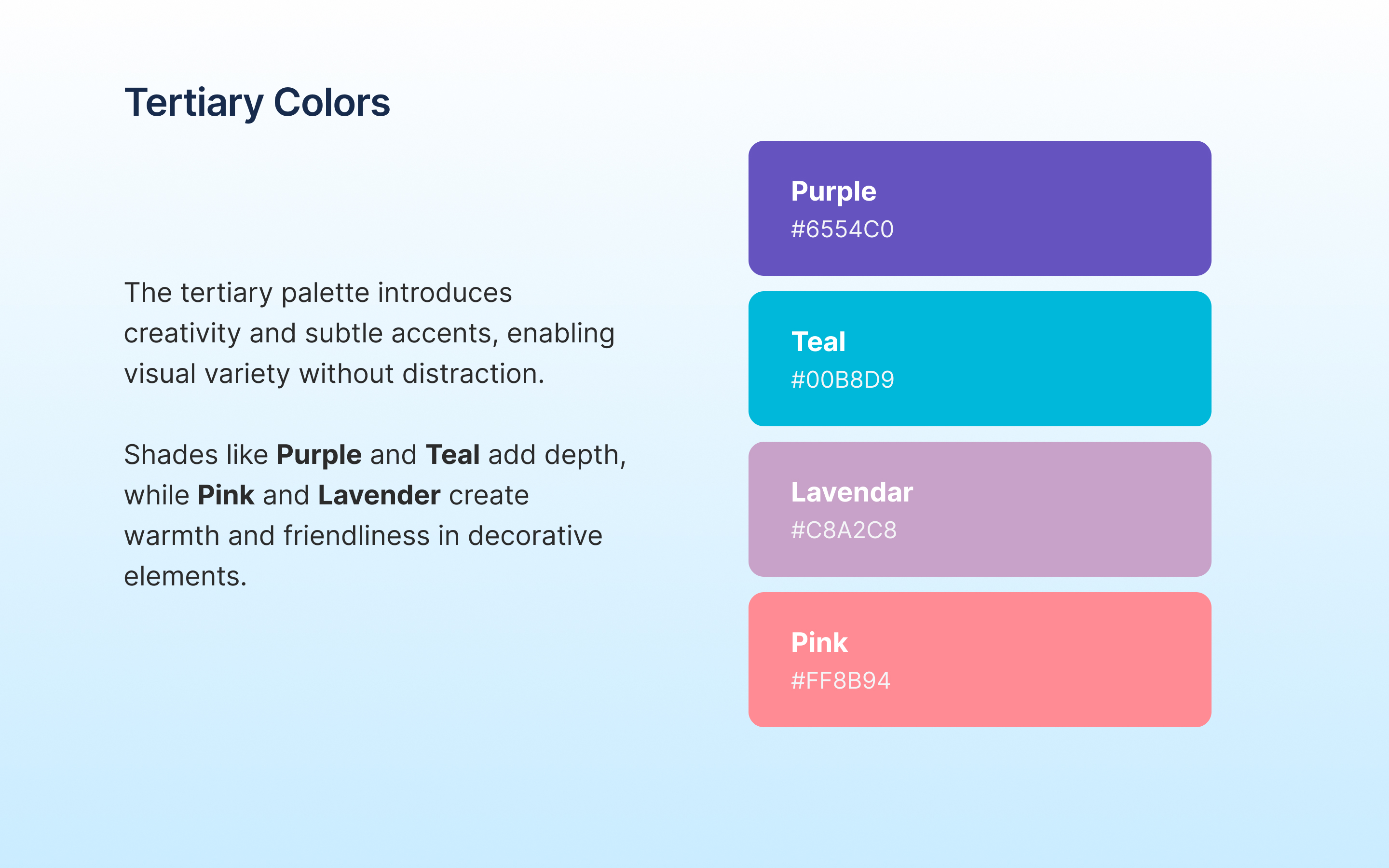 Visual Language & Color I wanted the interface to feel like a quiet room you'd actually want to sit in and study. The warm neutrals - off-wh