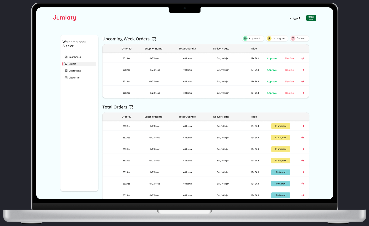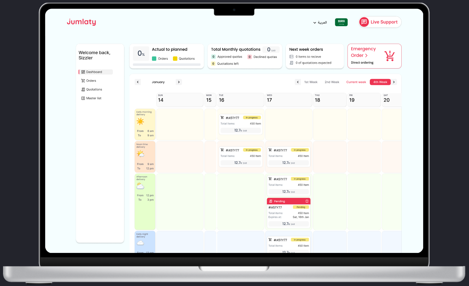 As a Product Designer at NOMU Group, I was responsible for revamping JumlatyPro and developing a B2B order scheduling platform tailored for HORECA (Hotels, Restaurants, and Catering). JumlatyPro is a comprehensive B2B e-commerce platform designed to streamline the procurement process for businesses in the hospitality industry. This project aimed to create a B2B counterpart to Appetito, the company's B2C e-commerce application.
